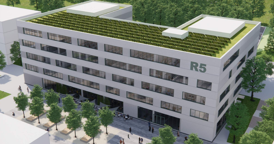 Zentrales Element der Außenanlagen wird ein neuer Aufenthaltsplatz sein, der sich zwischen den Neubauten R.5 und R.6 sowie dem Hörsaalgebäude Y und der Experimentalphysik erstreckt.
