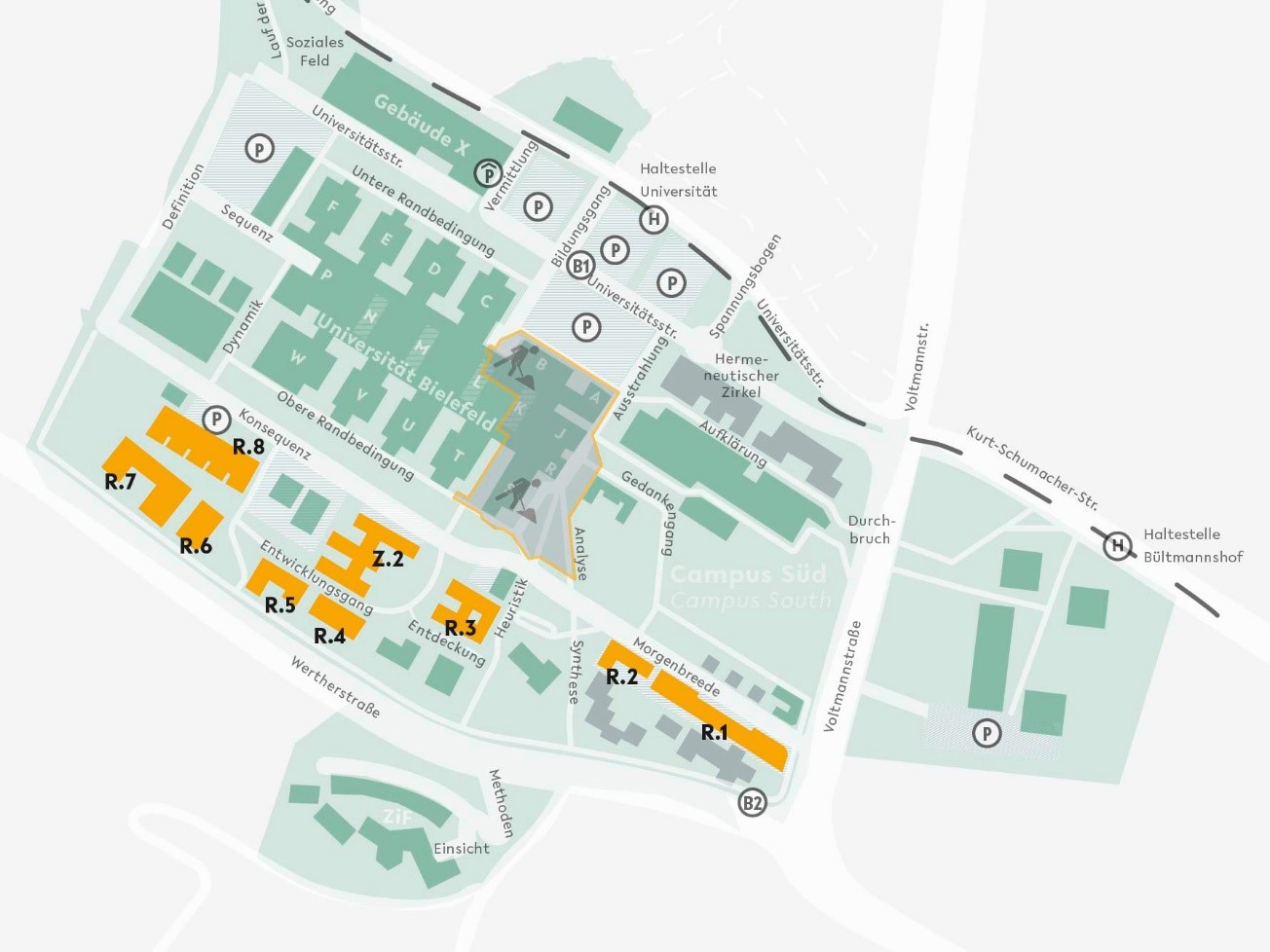 Das Anatomie-Gebäude für die Medizinische Fakultät OWL nimmt Gestalt an. Knapp ein halbes Jahr nach Beauftragung des Generalplanungsbüros „agn“ steht nun der Entwurf für den Neubau R.6, der sich zukünftig am neuen zentralen Platz südlich der Konsequenz befinden wird. Das Gebäude ist nach Vorgabe des Standortkonzepts ein viergeschossiger rechteckiger Kubus mit eingerücktem Haupteingang, der sich zum zentralen Platz hin öffnet. Die Fassade ist ein Zusammenspiel aus hellem, regelmäßigem Profilblech mit unregelmäßigen und gewellten Metallelementen in einem Messington, die Akzente setzen.