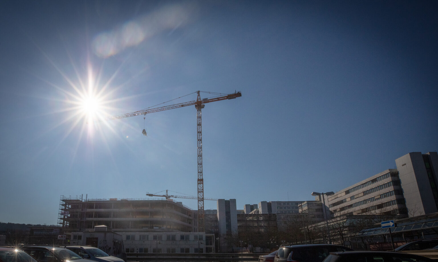 auf dem Campus sind, ist auf der Baustelle am Universitätshauptgebäude