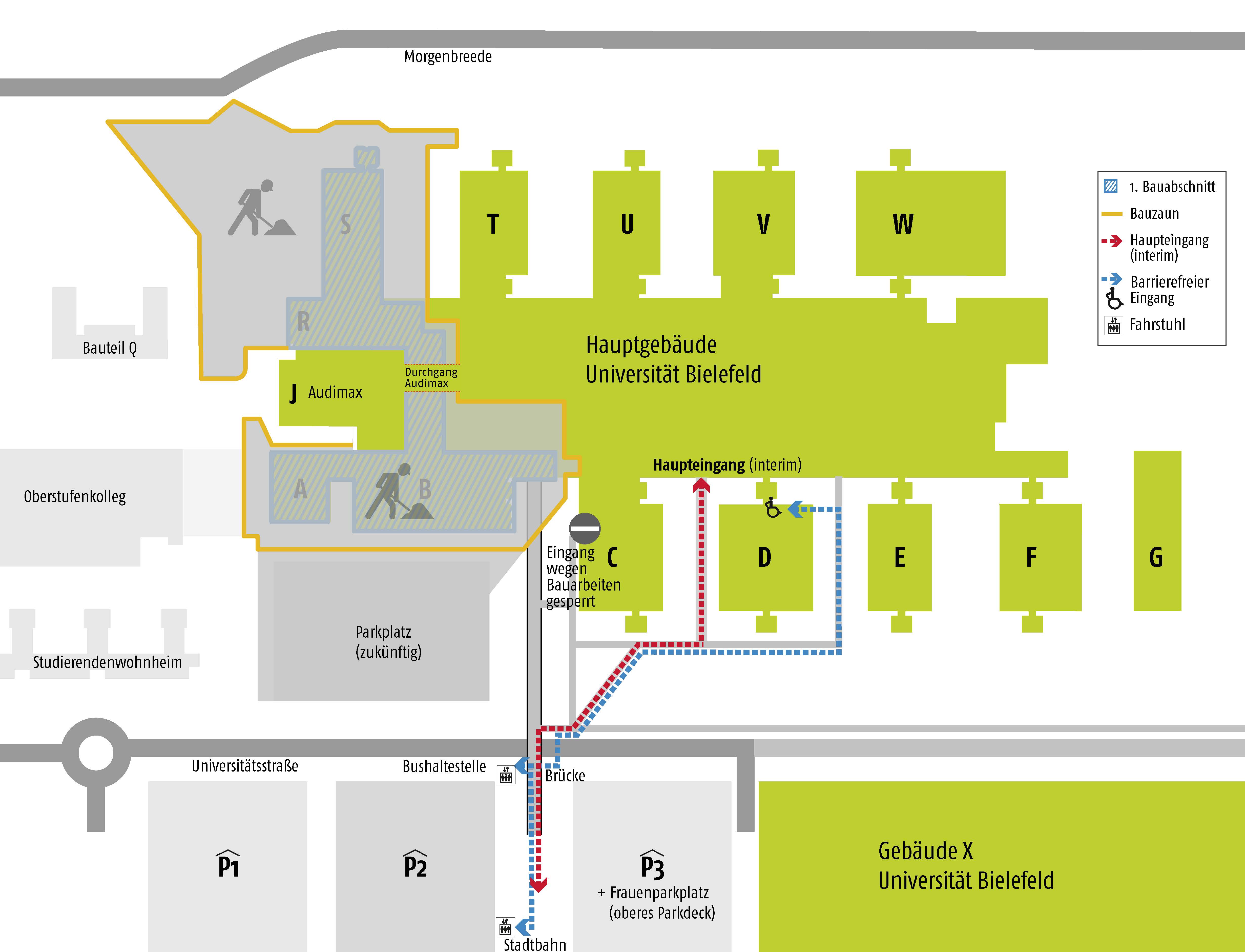 Platz im Innenbereich sollen den Weg in das Universitätshauptgebäude