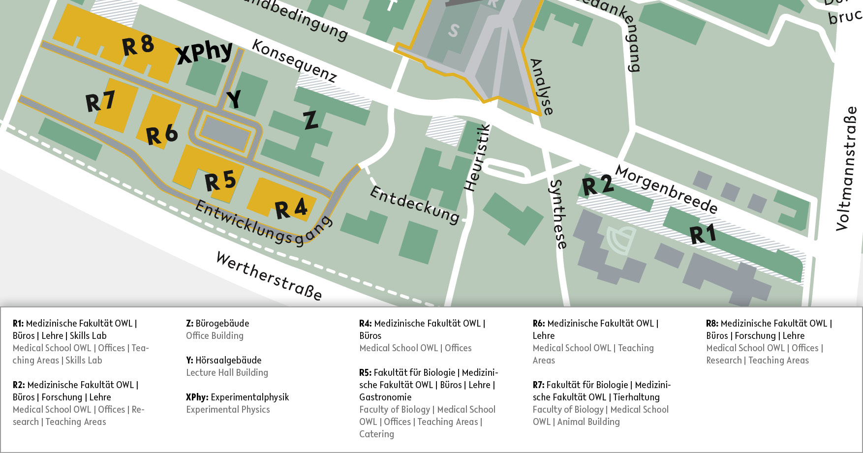 In der Planung der Neu- und Umbauten auf dem Campus Süd gibt es wesentliche Änderungen. Die Universität Bielefeld verzichtet auf den geplanten Neubau des Bürogebäudes R3 am Standort des aktuellen H-Gebäudes. Stattdessen wird das zukünftige Forschungsgebäude R8 größer als zunächst geplant. Durch den Neubau ist eine Vergrößerung der Fläche durch eine optimale Ausnutzung des Baufeldes möglich.