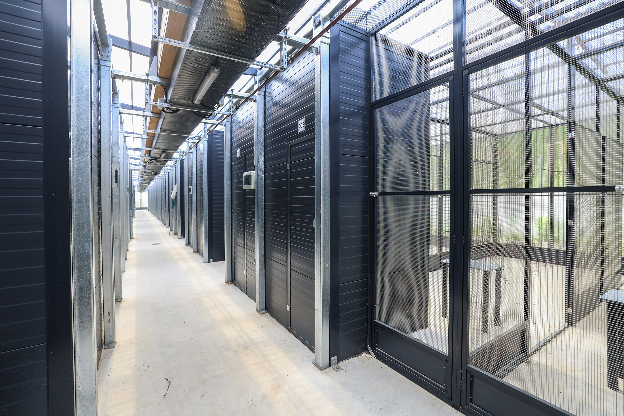 auf dem Campus Süd beziehen. Der Komplex umfasst 64 Einzelvolieren auf