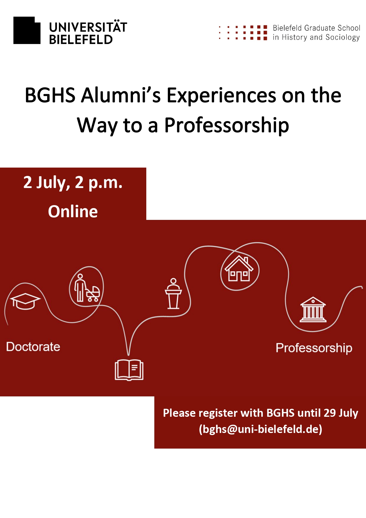 Am 02. Juli 2025 um 14 Uhr veranstaltet die BGHS unter dem Titel „BGHS Alumni’s Experiences on the Way to a Professorship“ ein Online-Meeting mit drei BGHS-Absolvent:innen, die Wege in die akademische Karriere gefunden haben. Mit dabei sind: