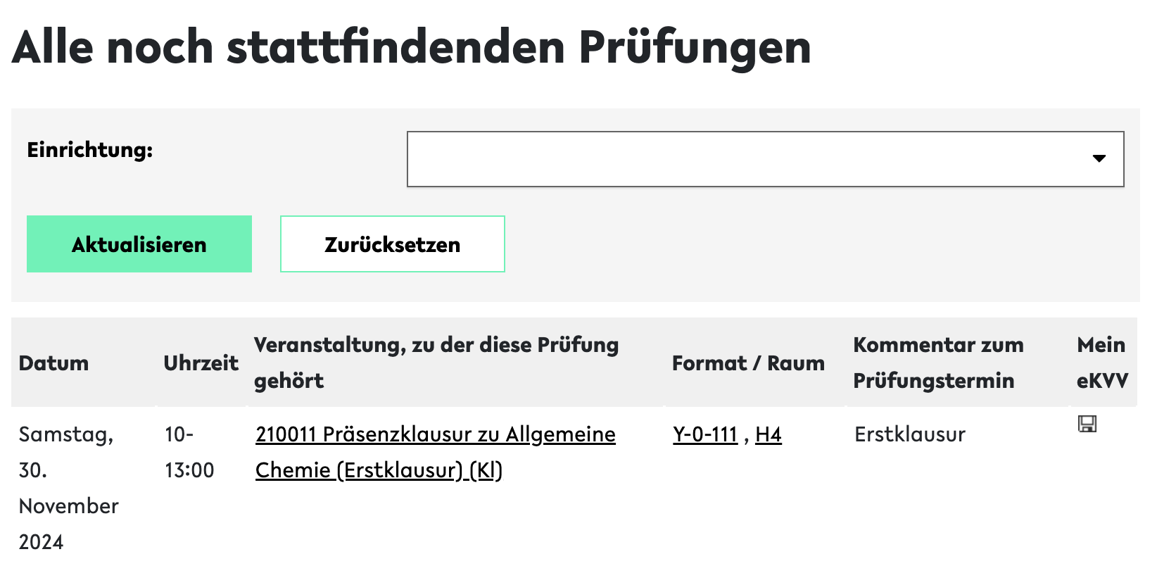 Der Begriff des Klausurtermins hat die Nutzung dieser wichtigen Eintragungsmöglichkeit aber beschränkt auf dieses Prüfungsformat. Andere, ebenso wichtige Formate wie etwa die M1-Prüfungen in der Medizin wurden dadurch ausgeschlossen, was auf mehreren Ebenen zu Problemen geführt hat. Seit heute ist daher eine neue Version des eKVVs online, die nun generell von Prüfungen spricht: