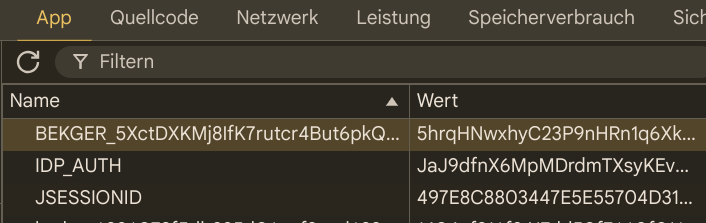Wir haben hier nur dem Weg ein sogn. Cookie in Ihrem Webbrowser zu platzieren und zwar das Cookie, dessen Namen mit BEKGER beginnt: