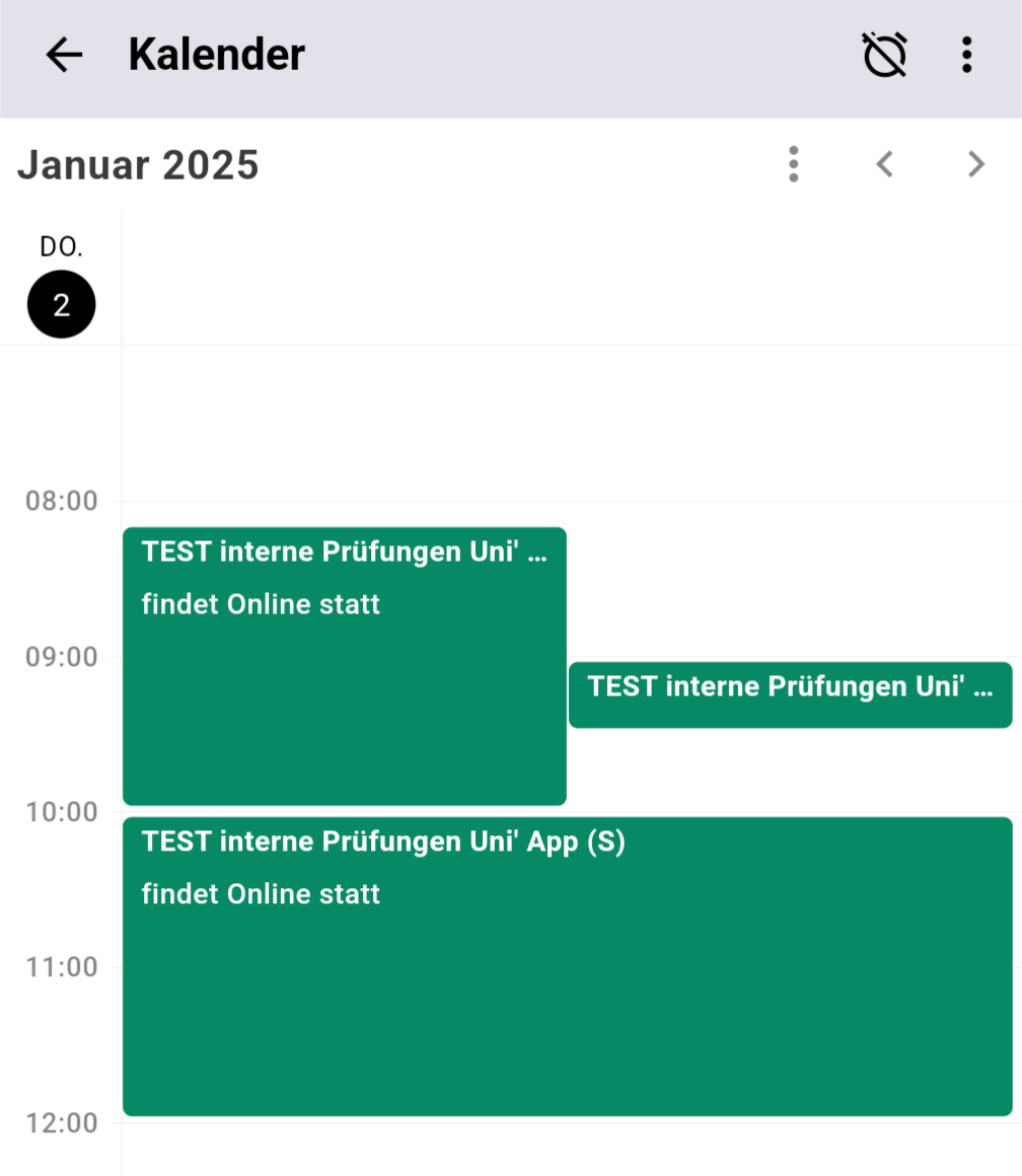 Zum Ende des vergangenen Jahres gab es ein Update der 'Meine Uni' App, die nun in Version 1.6.6 vorliegt. Abgesehen von Aktualisierungen der internen Programmierung und Fehlerbehebungen hat die neue Version aber auch ein Feature mitgebracht, welches schon länger auf der Wunschliste unserer Nutzer*innen stand: Die Kalenderdarstellung der eigenen Termine: