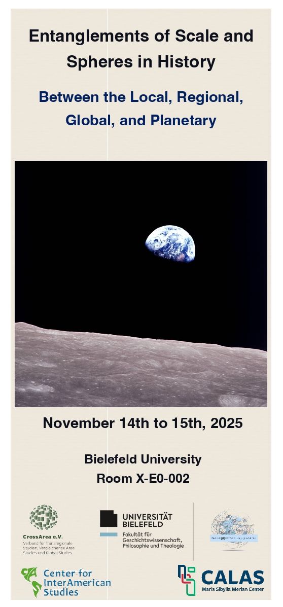 Wir möchten Sie sehr herzlich zur Konferenz zum Thema „Entanglements of Scale and Spheres in History: Between the Local, Regional, Global and Planetary“ einladen, die der Profilbereich Global und Verflechtungsgeschichte, in Kooperation mit dem CrossArea-Verband, CALAS, und CIAS organisiert. Die Konferenz wird am 14. /15. November in Bielefeld, im X-Gebäude (X-E0-002) stattfinden und die methodischen und konzeptionellen Herausforderungen der Global- und Verflechtungsgeschichte im planetarischen Zeitalter reflektieren.