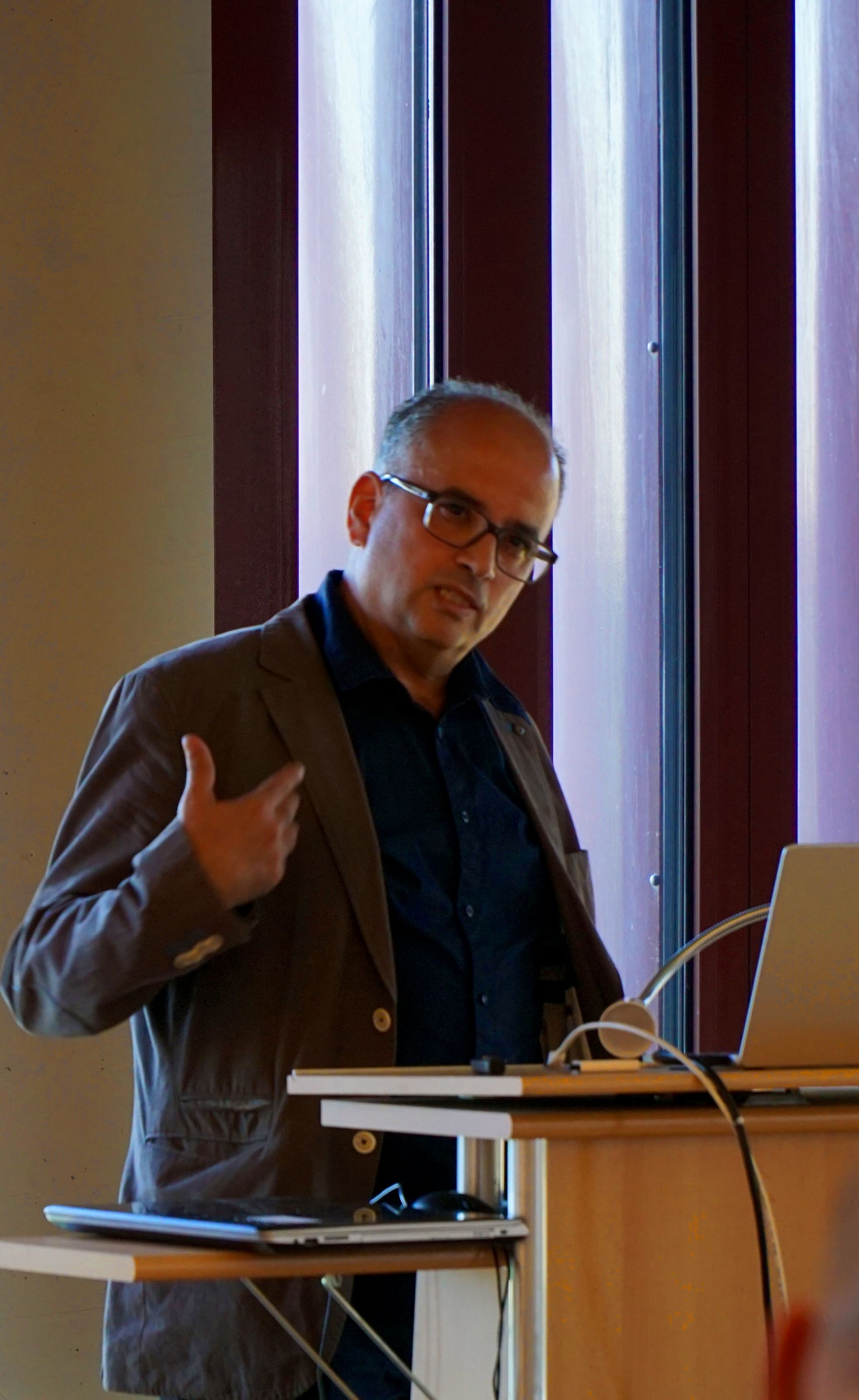 Was ihn an Sprache fasziniert, machte Dr. Said Sahel gleich zu Beginn seiner Einführung ins Thema deutlich: Obwohl es uns so vorkommt, als würde sich die Sprache ohne unser Mittun wandeln, beeinflussen wir durch die Art und Weise unserer Kommunikation Sprachwandel aktiv mit. Durch Beispiele gegenwärtig ablaufenden Sprachwandels wird die Variabilität des Deutschen besonders greifbar. Anhand eines Ratings von Konstruktionen wie „Anna ist am Kochen, als ihre Mutter anruft“ und „Ich bin den Film am Kennen.“ konnte das Publikum sein Sprachempfinden walten lassen und individuell beurteilen, inwieweit ihm solche Formulierungen hier und heute als üblich erscheinen.