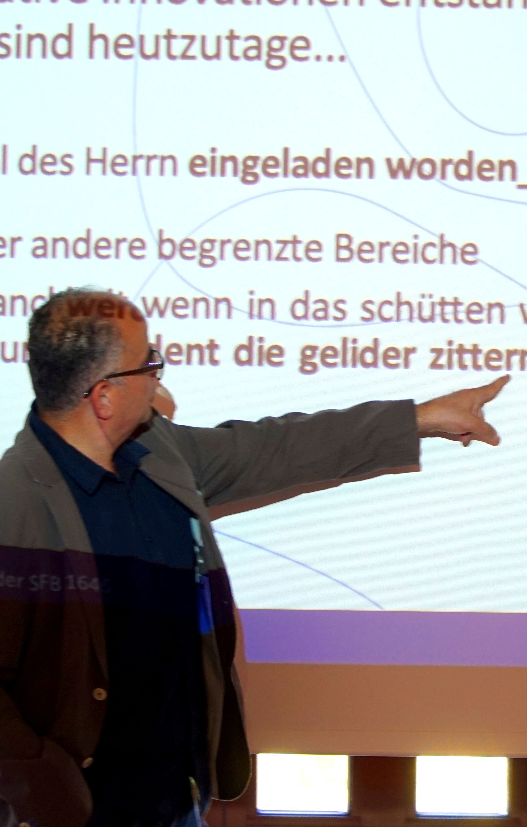 Wie Prof. Dr. Tanja Ackermann danach ausführte, gehen derartige „am-Progressiv“-Konstruktionen bis ins 15./16. Jahrhundert zurück und werden allerdings heute innerhalb des deutschen Sprachgebiets unterschiedlich bewertet. Der gemeinsame Blick in den Atlas zur deutschen Alltagssprache verriet: Im Rheinland sind Sätze wie „Ich bin am Schlafen.“ oder „Ich bin die Uhr am Reparieren.“ häufiger zu finden als in Westfalen oder Niedersachsen. So spiegeln sich unterschiedliche Phasen eines Sprachwandelprozesses auch in geographischen Unterschieden. Wie das Live-Experiment zur Formulierung „Ich fahre E/essen.“ demonstrierte, kann die eigene Sprachbiographie darüber mitentscheiden, wie die Äußerung interpretiert wird.