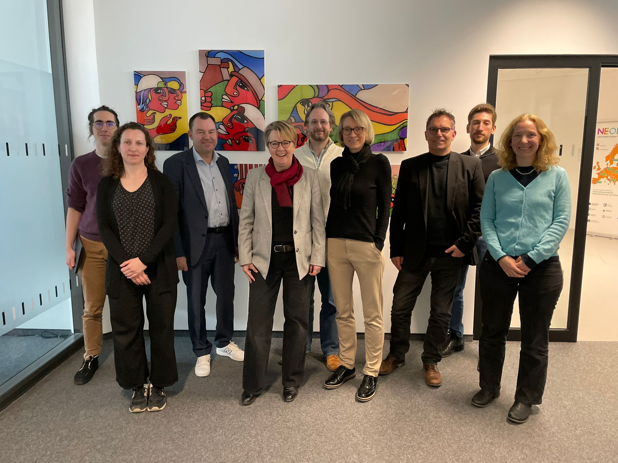 Beiratsmitglieder und Gäste der konstituierenden Sitzung (von links nach rechts): Dr. Adrien Florio, Dr. Andrea Polzien, Prof. Dr. Frank Ziegele, Dr. Uta Walter, Dr. Denis Meuthen, Prof. Dr. Michaela Vogt, Prof. Dr. Markus Walber , Matteo Gentile, Prof. Dr. Christiane Fuchs (nicht auf dem Foto: Dr. Sarah Sander und Elisabeth Schmidt)