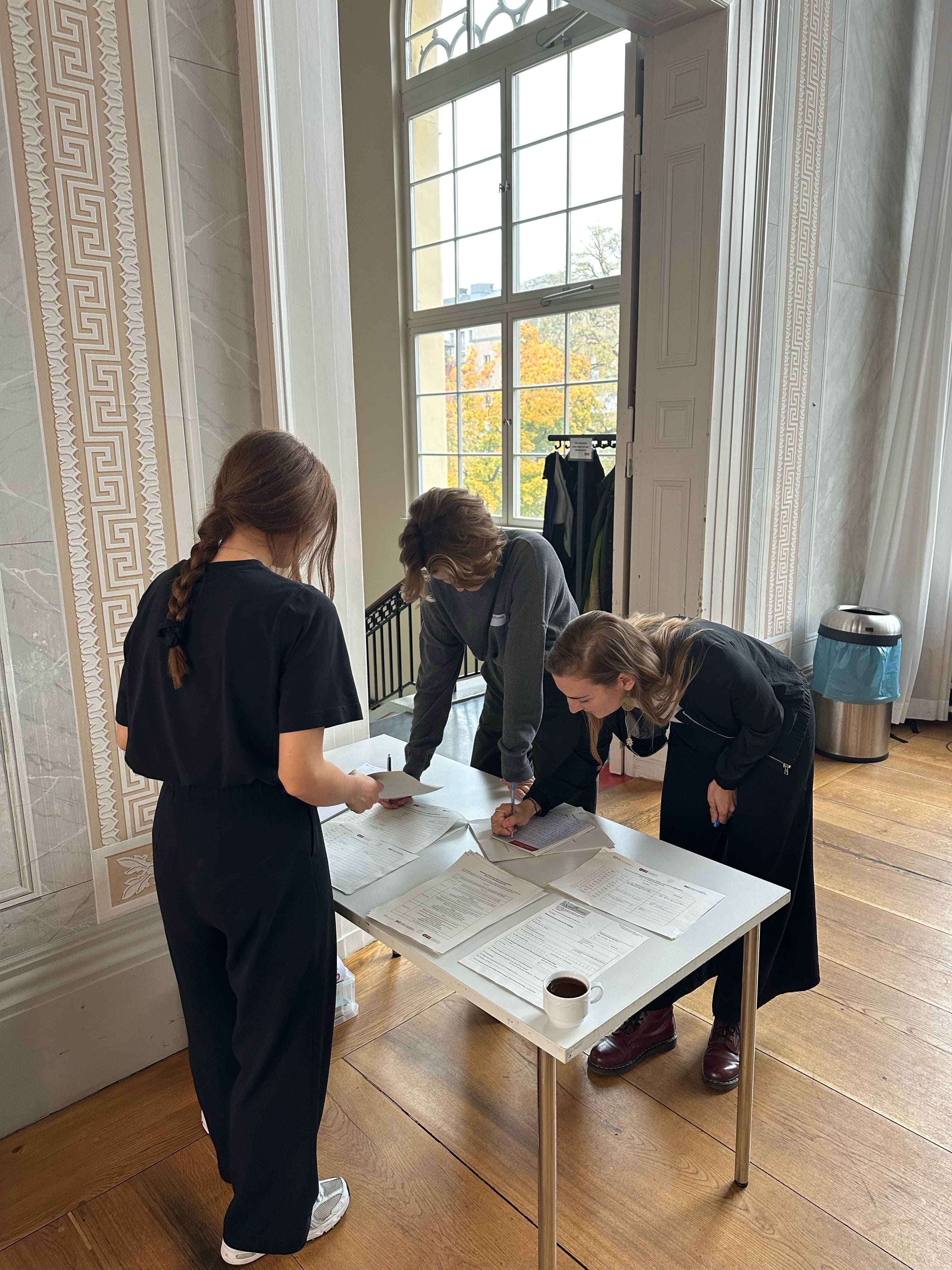 Nach einer konstruktiven Diskussion und einem multiperspektivischen Austausch fand am Abend die öffentliche Podiumsdiskussion „Infrastrukturen der Solidarität“ statt. Diese wurde von Anna-Lisa Müller und Johanna Ferstl moderiert und zog ein vielfältiges Publikum von rund 100 Interessierten in den Festsaal der Humboldt Graduate School. Auf dem Podium diskutierten fünf Gäste mit unterschiedlichen Hintergründen, die jedoch ähnliche Fragen in ihrem beruflichen und persönlichen Alltag beschäftigen: