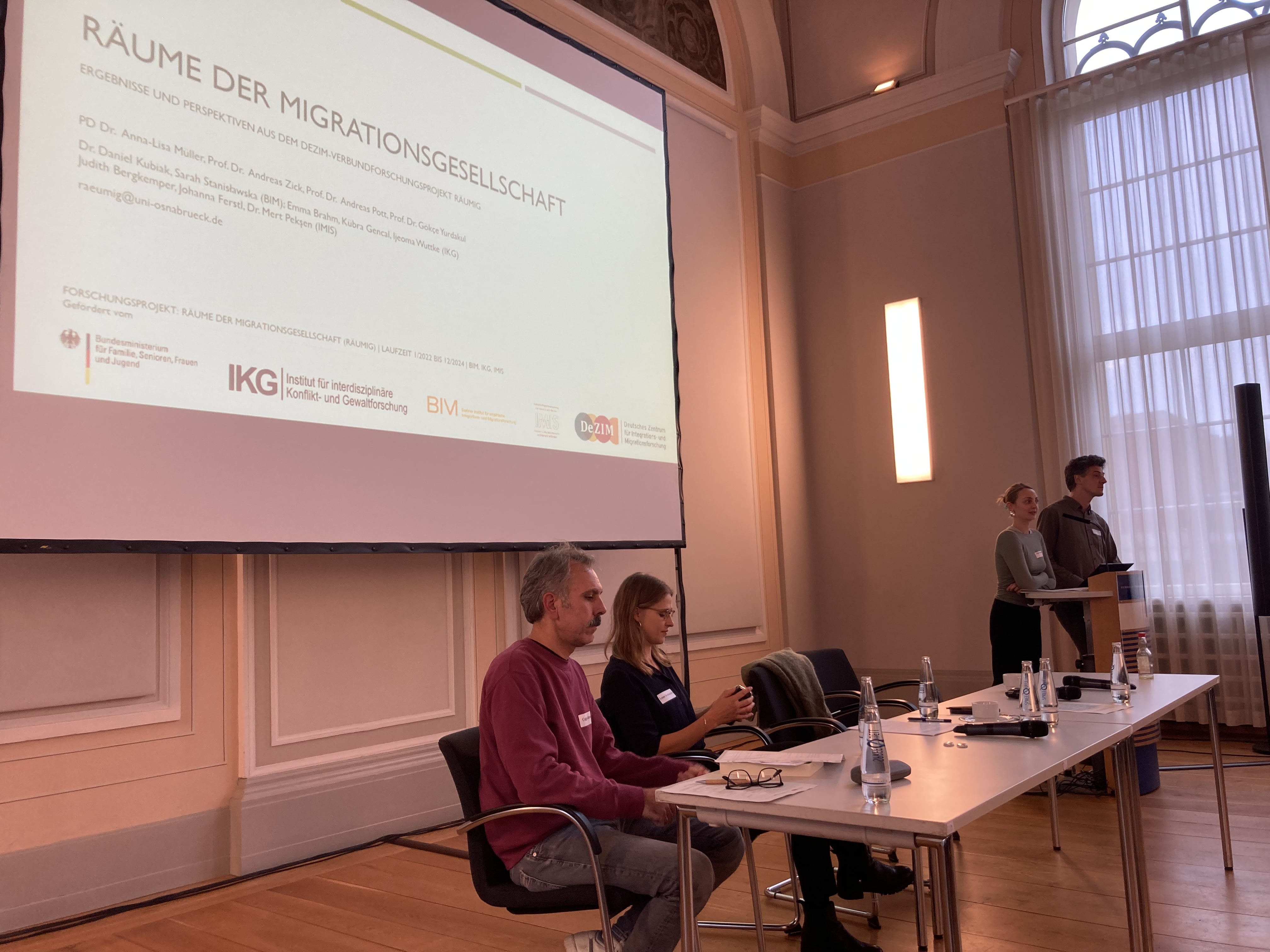 Am 28. und 29. Oktober 2024 fand in Berlin die Abschlussveranstaltung des RäuMig-Projekts statt, welche den Abschluss von drei Jahren intensiver Forschungsarbeit darstellte. Die zweitägige Veranstaltung bot eine Plattform, um die eigenen Forschungsergebnisse zu präsentieren und über weitere Projekte von Akteur:innen aus Wissenschaft und Zivilgesellschaft in einen gemeinsamen Austausch zu kommen. Die Veranstaltung begann mit einer herzlichen Begrüßung durch die Projektkoordinatorin Anna-Lisa Müller, gefolgt von einer inhaltlichen Einführung von Prof. Dr. Andreas Zick und Kübra Gencal, in welcher der Hintergrund des Forschungsprojekts und die zentralen Ergebnisse vorgestellt wurden.