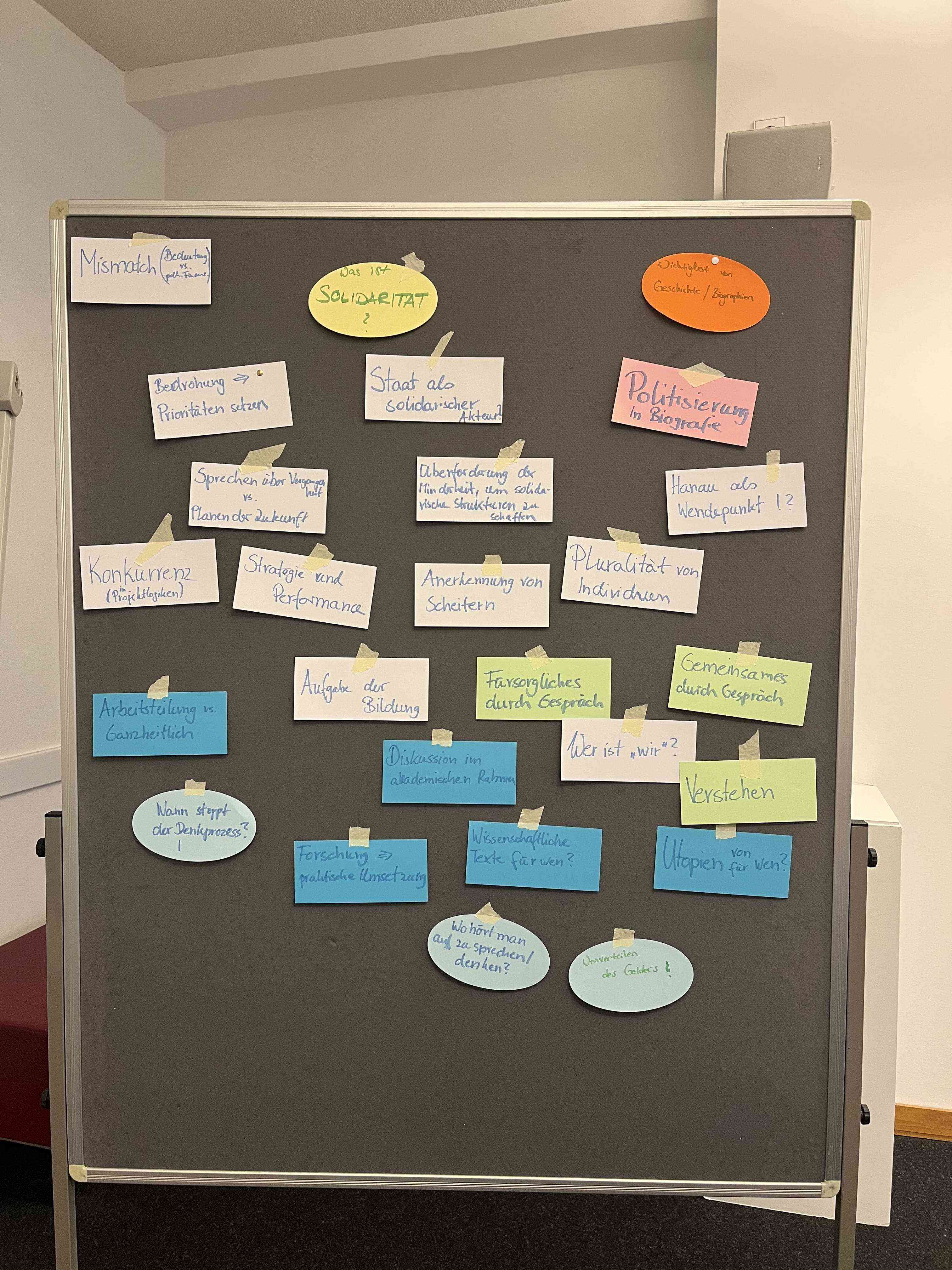 Die Themen der Podiumsdiskussion umfassten die Erinnerung an (rassistisch motivierte) Gewalt und Anschläge, Erinnerungspolitik und -kultur, Ausgrenzungserfahrungen, das Gefühl der Fremdheit in der eigenen Gesellschaft, sowie Schmerzen und Trauer im individuellen und gemeinschaftlichen Zusammenleben. In der Diskussion wurde außerdem die entscheidende Bedeutung von Solidarität sowie die Rolle sozialer Strukturen und Infrastrukturen betont. Abgeschlossen wurde die zweitägige Veranstaltung am nächsten Tag mit einem Vernetzungsworkshop, der von Johanna Ferstl, Daniel Kubiak, Kübra Gencal und Sarah Stanisławska organisiert und moderiert wurde. Im Workshop wurden insbesondere die Themen des vorherigen Tages erneut aufgegriffen. Gemeinsam wurden außerdem die Möglichkeiten und Herausforderungen der Zusammenarbeit zwischen Wissenschaft und Zivilgesellschaft reflektiert. Ziel des Workshops war es, einen Raum zu schaffen, in dem die Teilnehmenden offen und kollegial ins Gespräch kommen und sich über Herausforderungen und Lösungsansätze austauschen konnten.