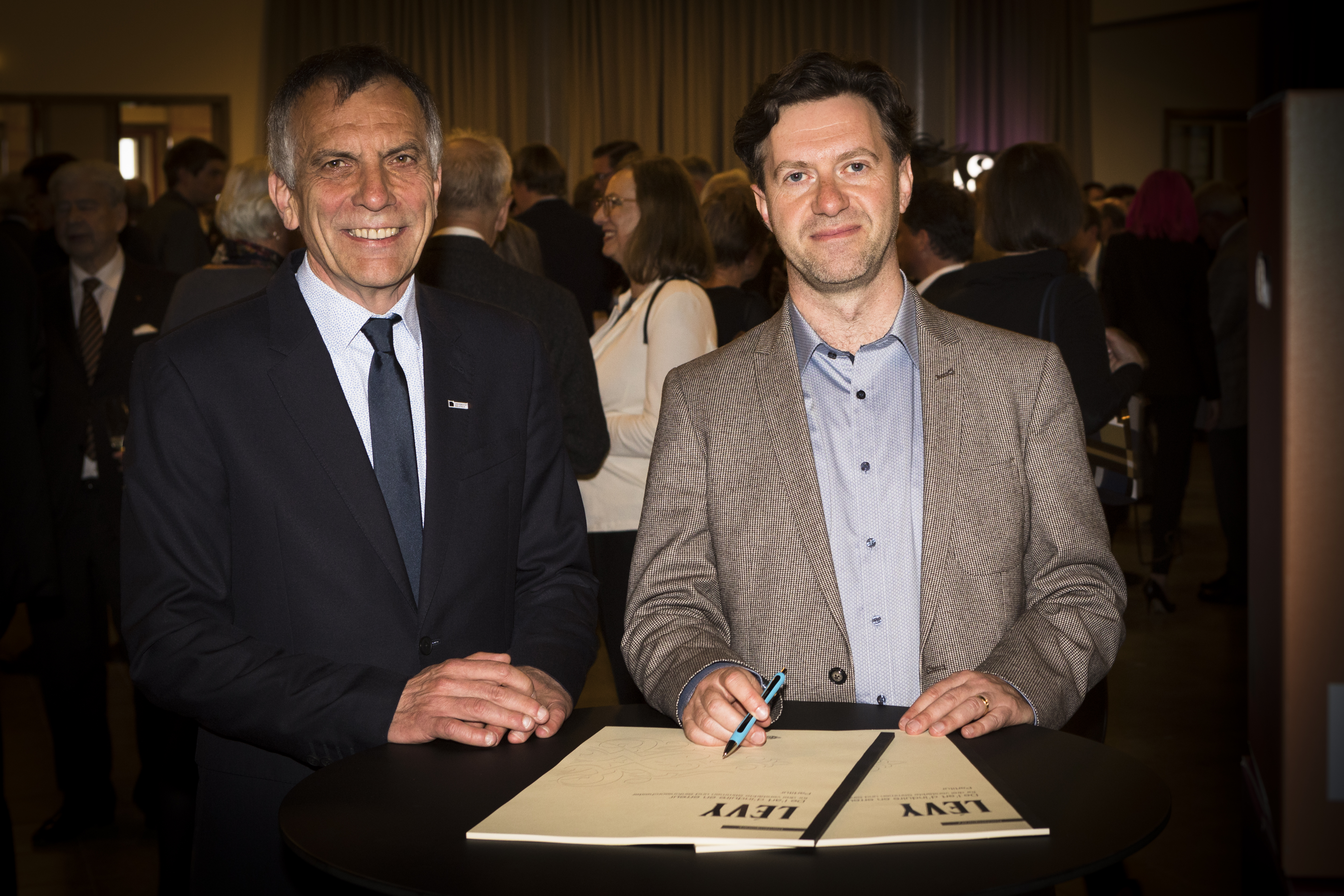 Rektor Prof. Dr.-Ing. Gerhard Sagerer mit dem Komponisten Fabien Lévy, der ein Werk zum Universitätjubiläum komponiert hat.