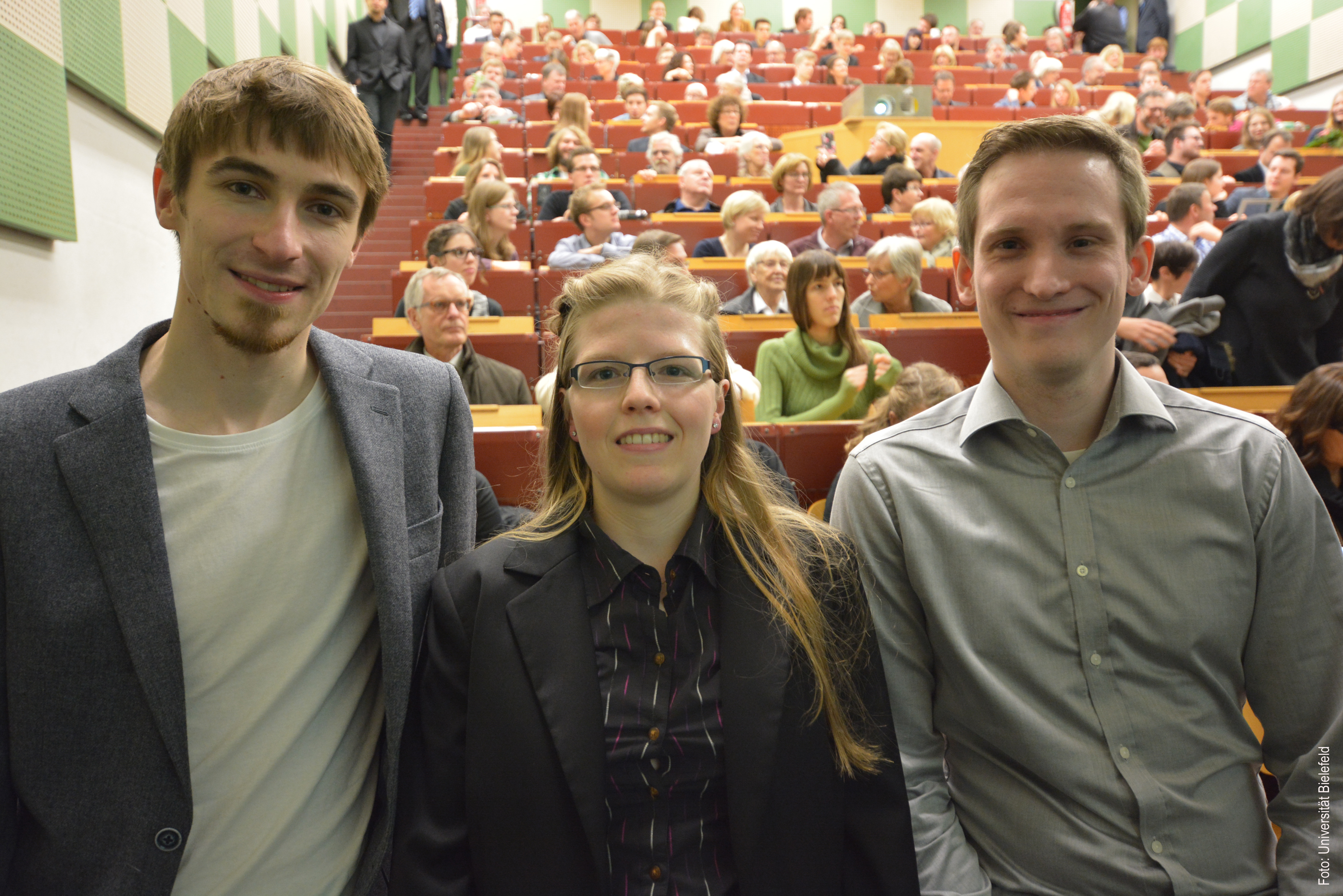 Ausgezeichnete Absolventen (v.l.): Christian Bartz, Lea Schröder und Florian Venghaus. Foto: Universität Bielefeld