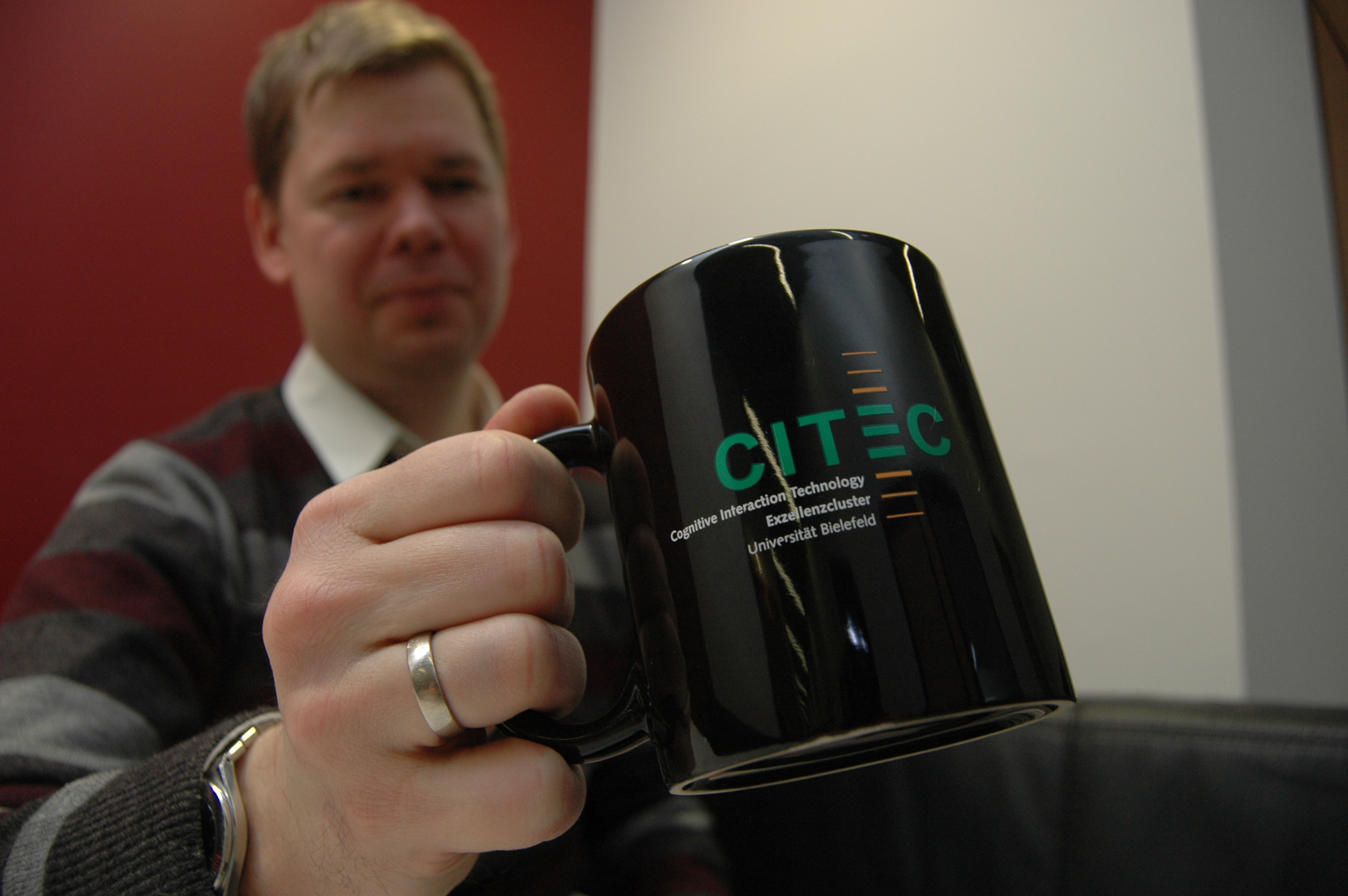 Ab wann berechnet das Gehirn, wie sich Hand und Arm bewegen müssen, um Kaffeetassen und andere Objekte, präzise zu positionieren? Das haben Bielefelder Forscher untersucht. Foto: CITEC/Universität Bielefeld