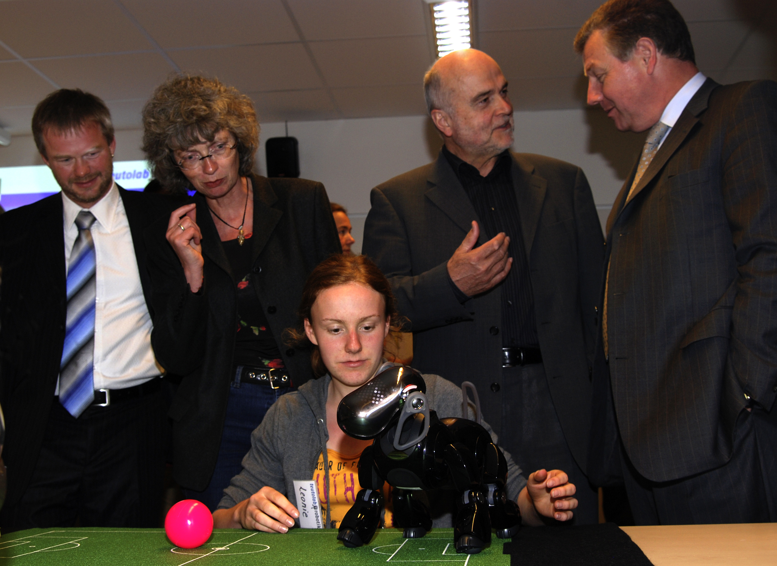 Ganz wie die erwachsenen Forscherinnen und Forscher sollen die Jugendlichen angeregt diskutieren, gemeinsam an der Lösung tüfteln und ihre Ideen mit dem Roboter ausprobieren können. Sie steuern den Aibo über eine in der Universität Bielefeld entwickelte Programmierumgebung.