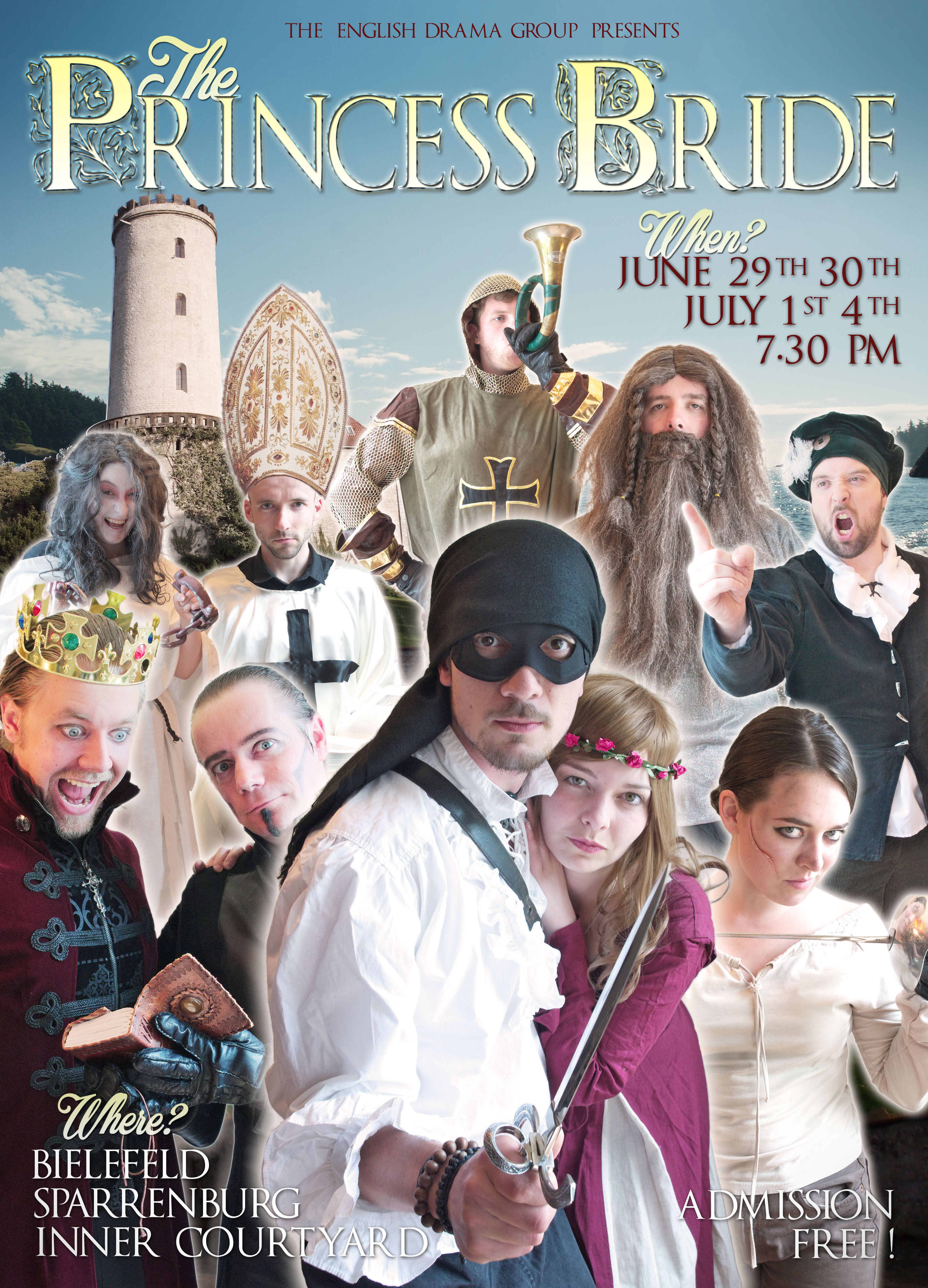Zur Feier ihres 40-jährigen Jubiläums präsentiert die English Drama Group der Universität Bielefeld eine Bühnenadaption des Fantasy-Films „Die Braut des Prinzen“, im Original „The Princess Bride“. Die Gruppe spielt am 29. und 30. Juni sowie am 1. und 4. Juli jeweils ab 19.30 Uhr auf dem Innenhof der Sparrenburg. Der Eintritt ist frei.