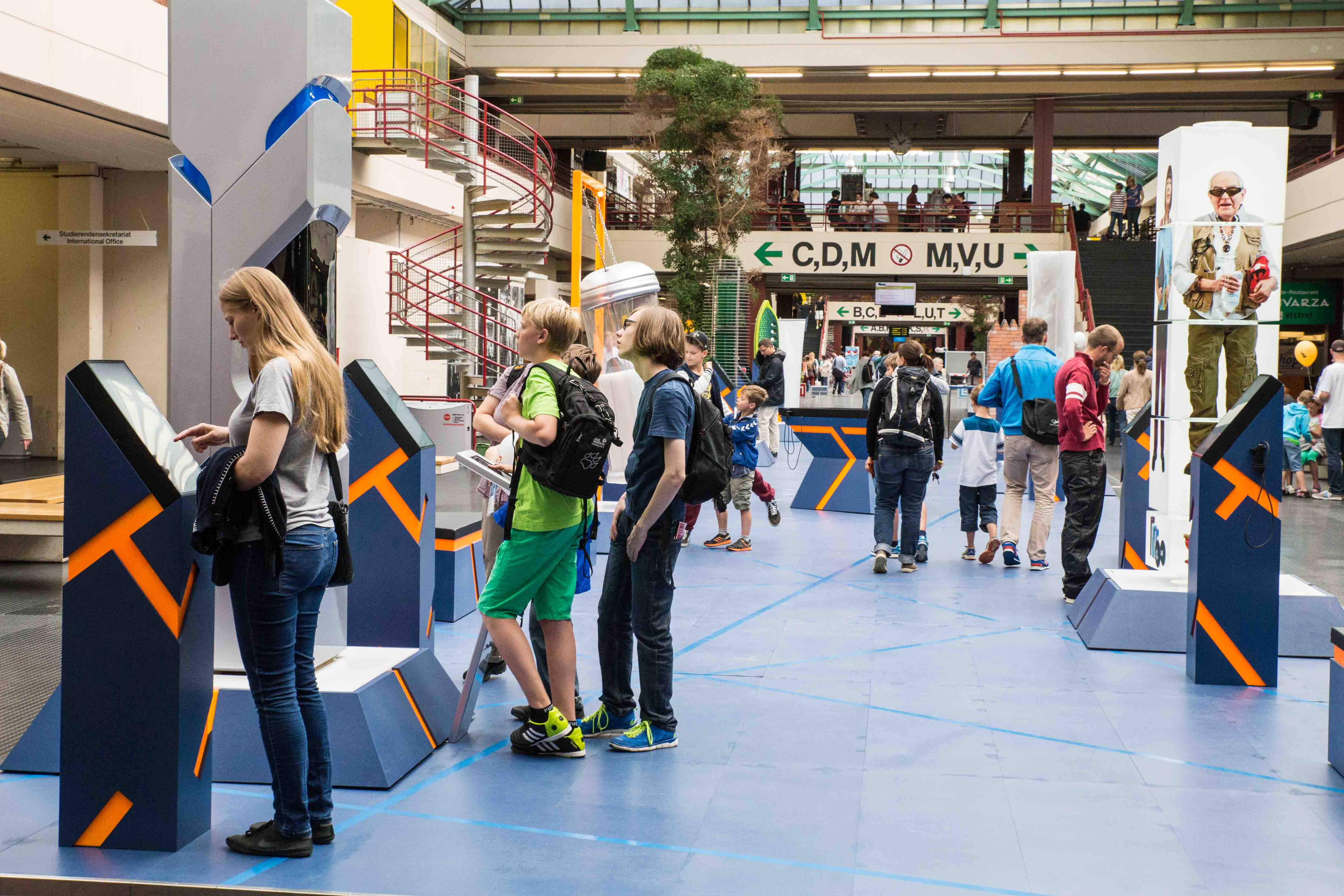In der zentralen Halle des Universitätshauptgebäudes ist beispielsweise die Mitmach-Ausstellung „Das ABC der Geschichte und Gesellschaft“ der Bielefelder Graduiertenschule in Geschichte und Soziologie (BGHS) zu finden. Von „A“ wie Antike über „F“ wie Frau zu „M“ wie Mittelalter können die Besucherinnen und Besucher Begriffe aus der Geschichtswissenschaft und den Sozialwissenschaften kennenlernen. 26 Begriffe werden mit Fotos, Zeichnungen, Filmen, Animationen, Hörproben, Objekten und Installationen erklärt. Wer alle ausgestellten Begriffe in einem Kreuzworträtsel findet und das Lösungswort herausbekommt, wird mit einem Preis belohnt.