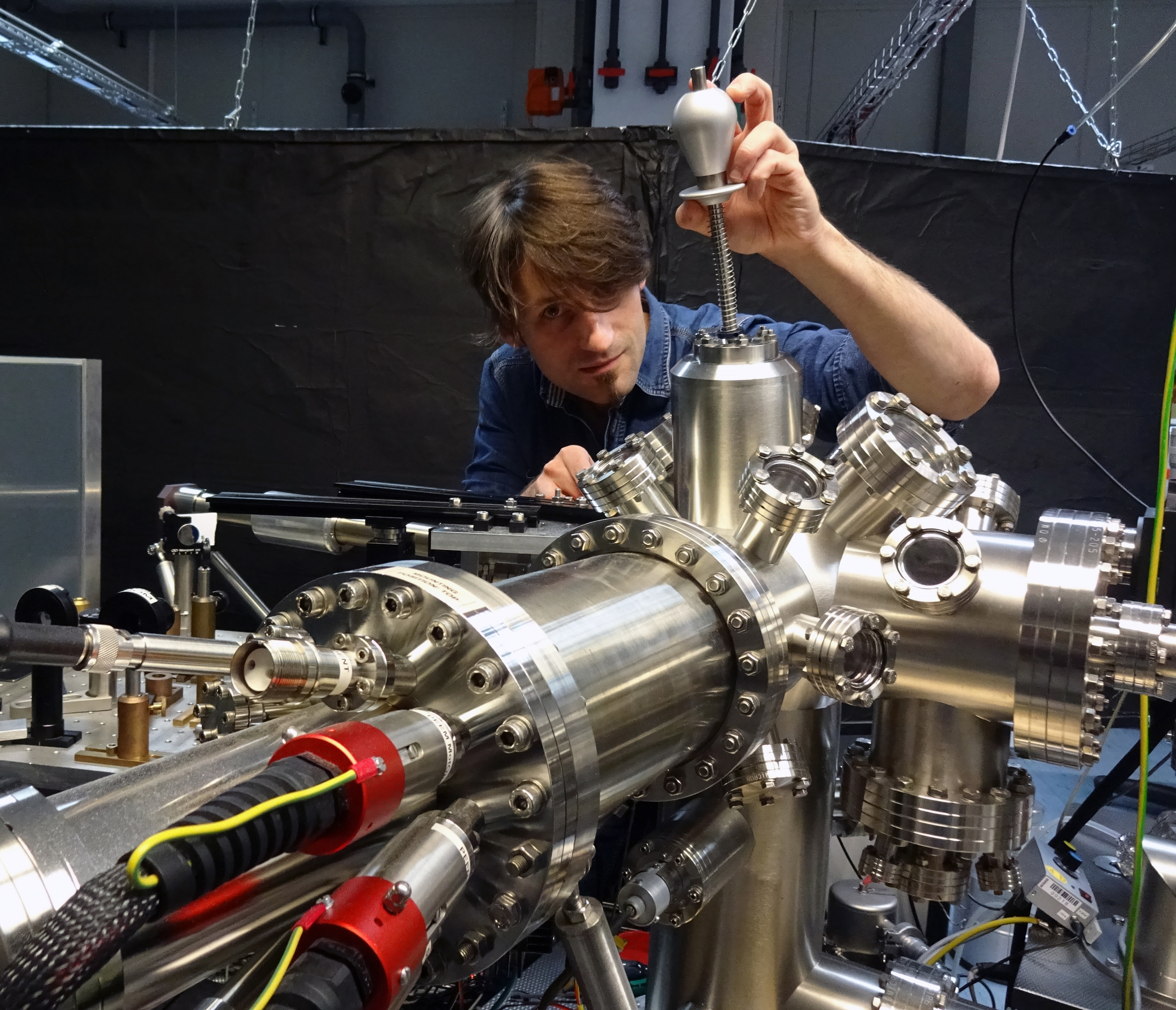 Martin Piecuch justiert das Elektronenmikroskop zum Nachweis der heißen Elektronen. Foto: Technische Universität Kaiserslautern