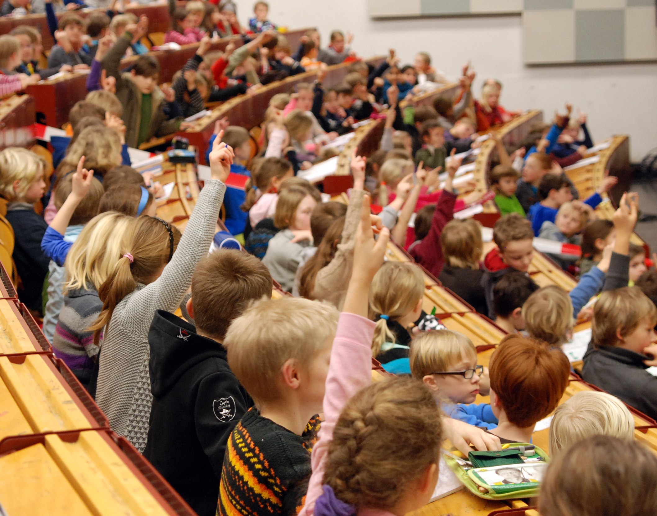 2017. Bei jeder Vorlesung sitzen 400 Kinder in einem großen Hörsaal in