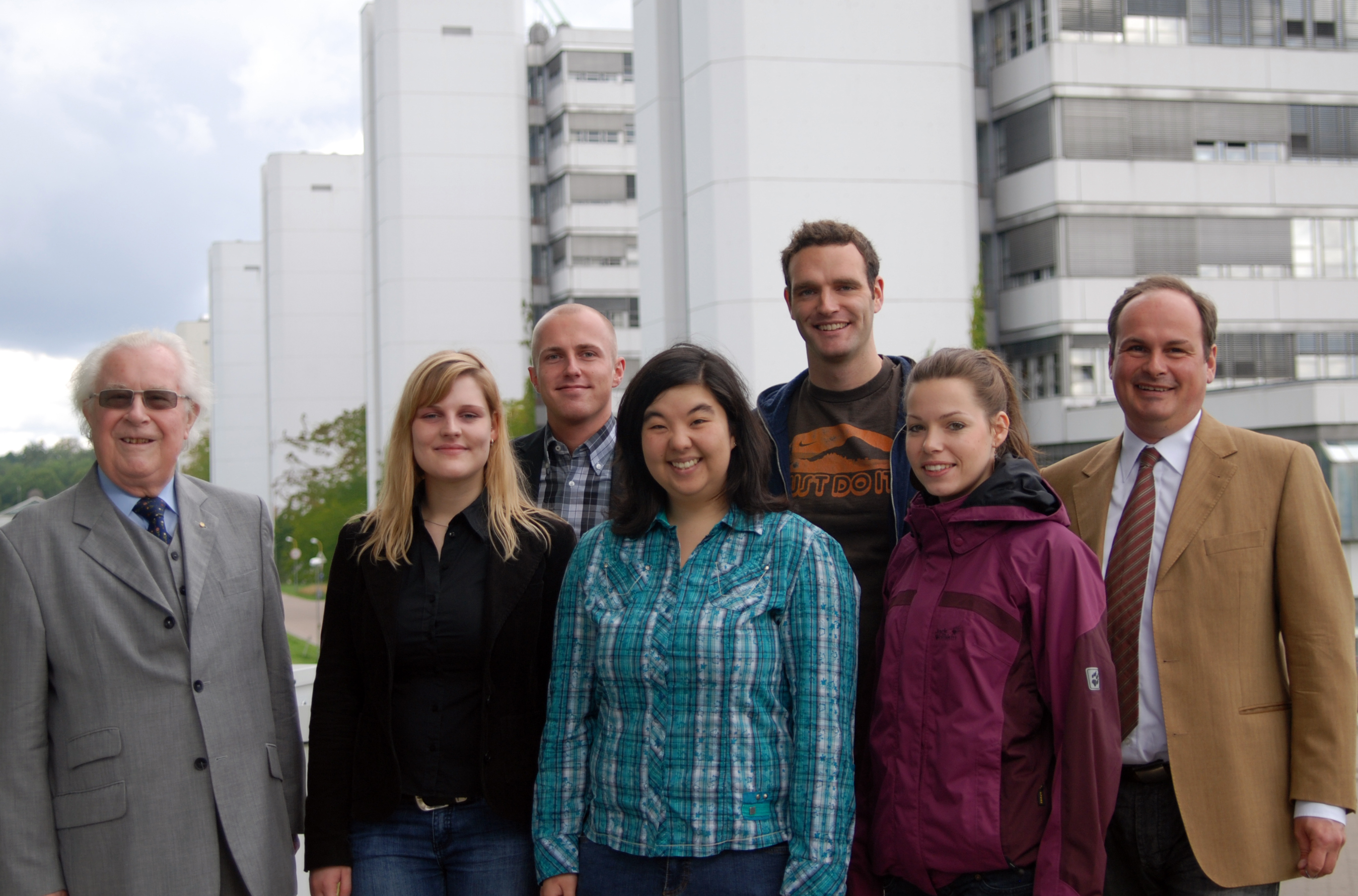 Professor Dr. Helmut Steiner mit den Stipendiaten Christina Bomholt, Stefan Arndt, Yvonne Hermann, Mathias Gruber, Julia Weiske und dem Leiter des International Office Dr. Thomas Lüttenberg (v.l.)