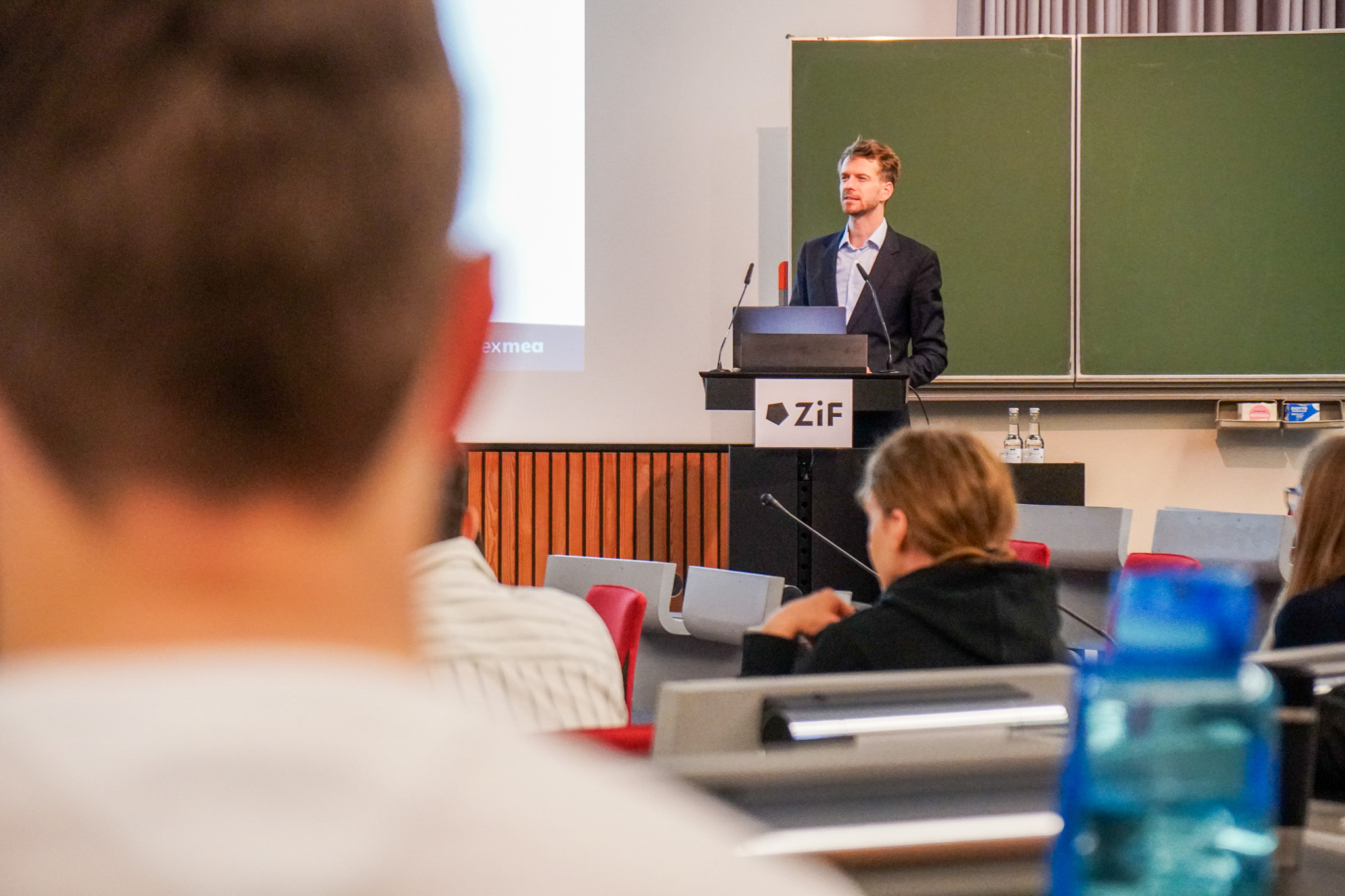 Wie können digitale Tools das Jurastudium erleichtern? Mit dieser Frage beschäftigten sich rund 100 Informatik-Studierende der Universität Bielefeld im Sommersemester 2025. In zehn Teams entwickelten sie unter der Leitung von PD Dr. Sven Wachsmuth (Technische Fakultät) Prototypen für eine juristische Lern-App. Beim Abschlusswettbewerb im Zentrum für interdisziplinäre Forschung (ZiF) wurden die drei überzeugendsten Teams mit insgesamt 5.000 Euro Preisgeld geehrt – gestiftet vom Institut für Anwalts- und Notarrecht der Universität Bielefeld.