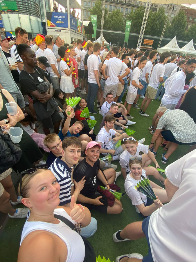 Am Samstag und Sonntag wurde das Seminar in den Räumen der Juristenfakultät Leipzig fortgesetzt. Auch hier setzten die Studierenden ihre Präsentationen fort und vertieften die Diskussionen zu den vielfältigen Aspekten des Privatrechts und der Nachhaltigkeit. Ein besonderes Highlight war der Samstagabend, an dem die Gruppe das Deutschlandspiel beim Public Viewing in der Fan Zone auf dem Leipziger Augustusplatz verfolgte. Dieser Ausflug bot eine willkommene Abwechslung.