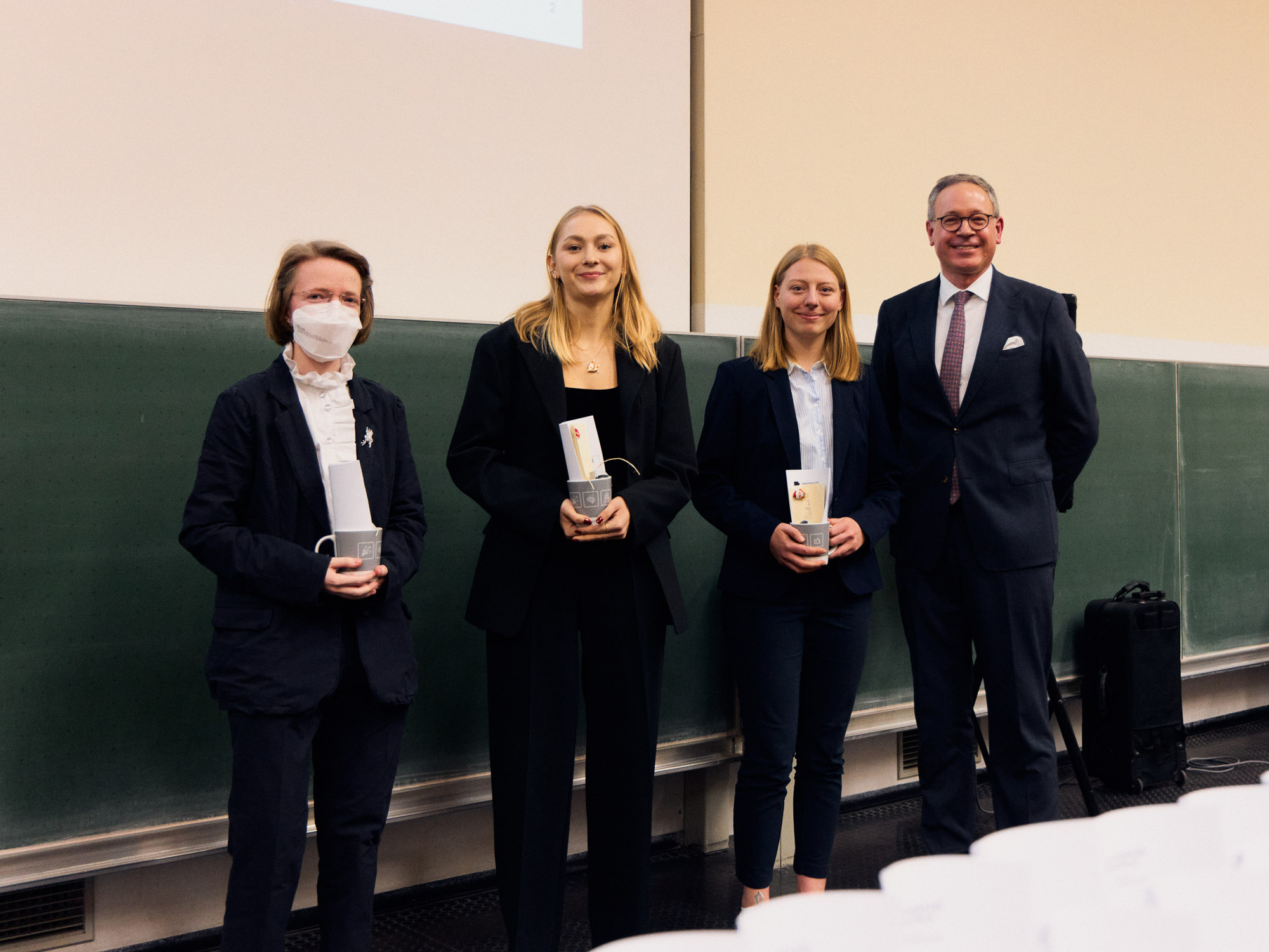 Musikalisch begleitet wurde der Festakt von der Jura-Band, die mit bekannten Pop- und Rocksongs für eine angenehme Stimmung sorgte. Nach der Ehrung der besten Absolvent*innen erhielten alle eine Tasse in Fakultätsfarbe, die beim morgendlichen Kaffee an ihre Alma Mater erinnern soll. Gleichzeitig nutzten die Dozent*innen die Gelegenheit, sich persönlich von ihren Studierenden zu verabschieden.