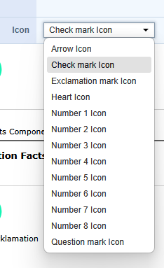 Nun fügen Sie die einzelnen Facts Komponenten in die Section Facts Komponente. Sie können bei den einzelnen Facts aussuchen, welches Symbol sehen ist. Sie können wählen zwischen Pfeil, Fragezeichen, Ausrufezeichen, Herz und Zahlen von 1-8.