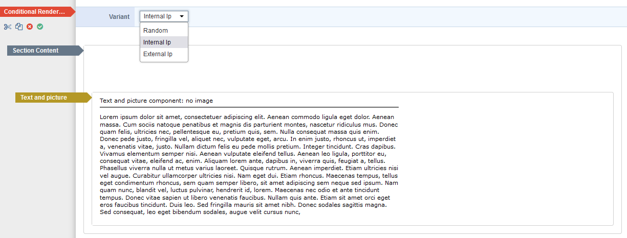 - Ziehen Sie im Anschluss die Komponente “Section Content” in die Komponente “Conditional Rendering”.
