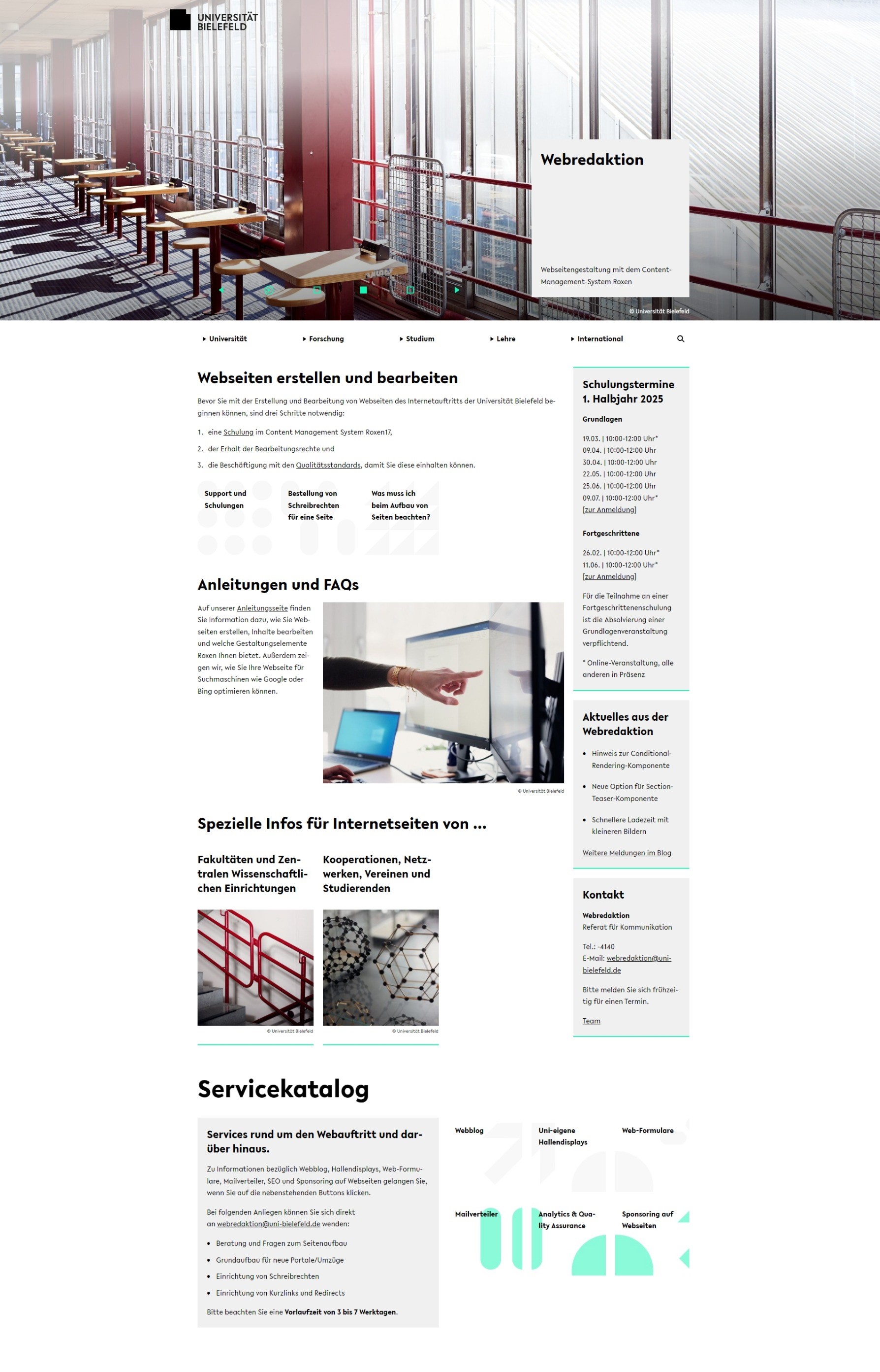 Die Webredaktion hat eine neue Webseite. Dort können Sie alles über die Webseitengestaltung mit dem Content-Management-System Roxen nachlesen. Die neue Webseite ist komprimierter und dadurch übersichtlicher als die bisherige. Von der Portalseite gelangen Sie über Verlinkungen zu den jeweiligen Folgeseiten.