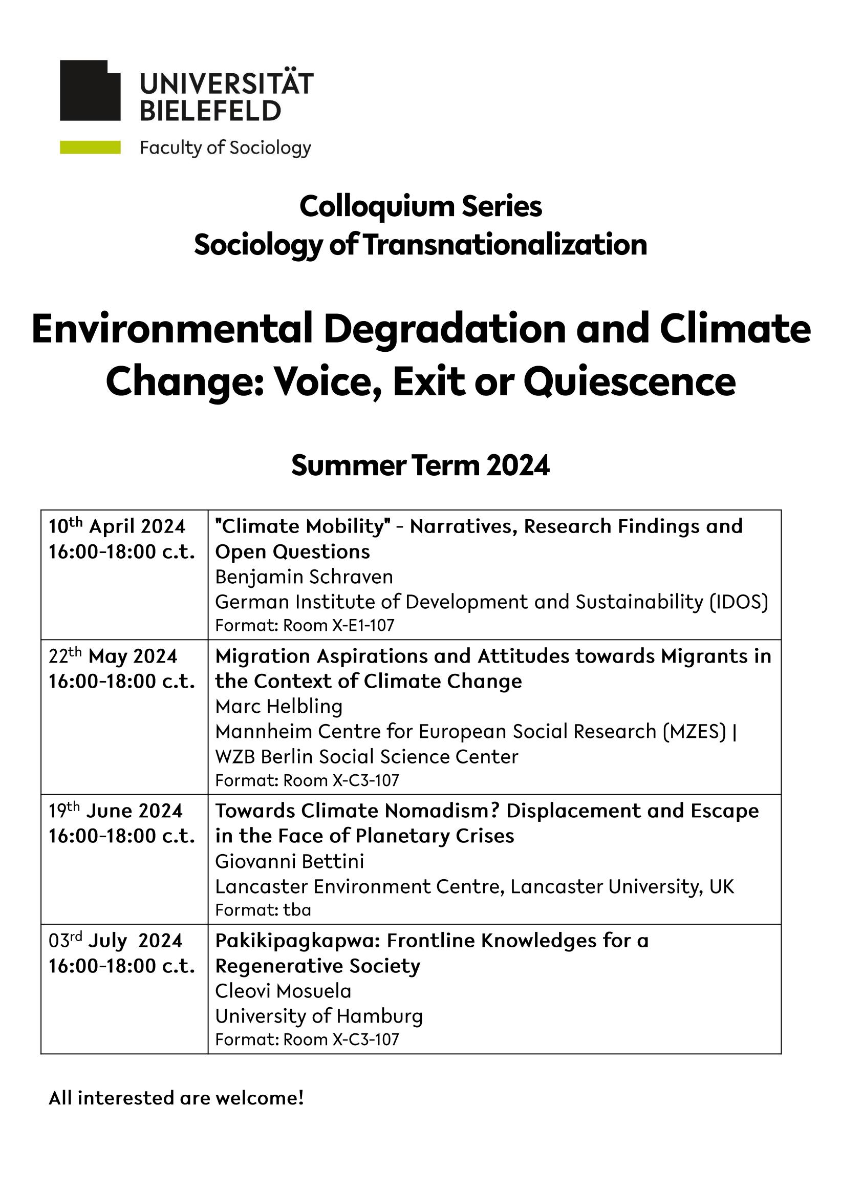 Colloquium Series "Environmental Degradation and Climate Change: Voice, Exit or Quiescence"