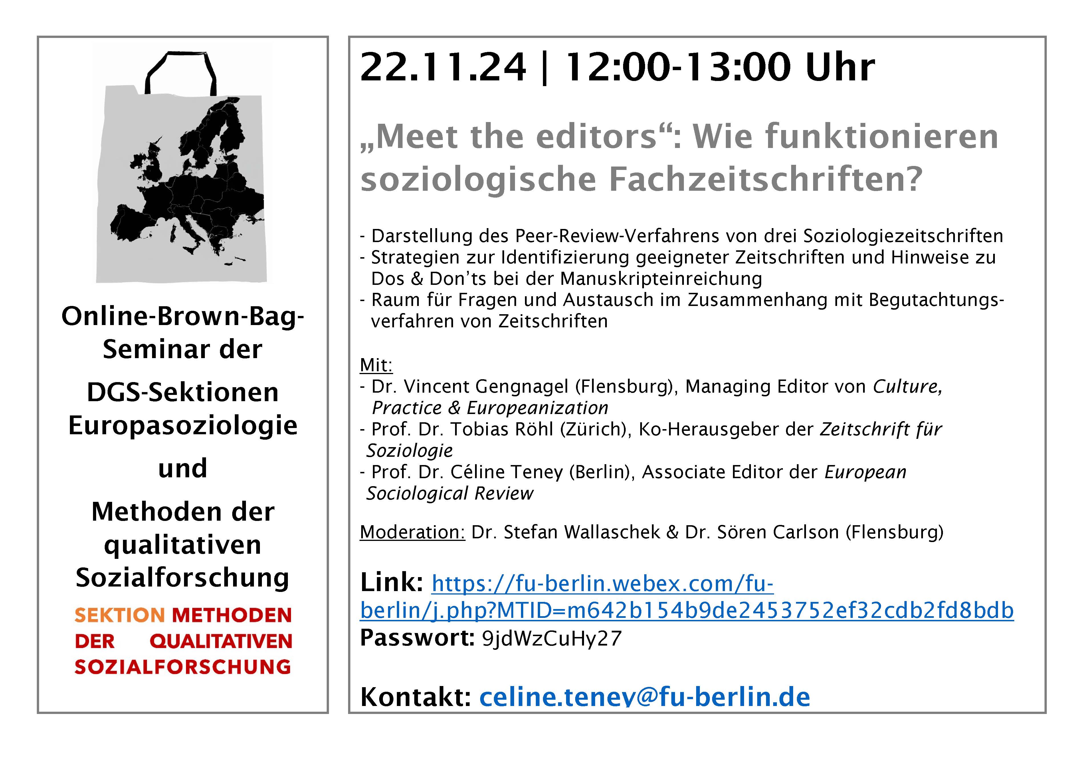 Die Veranstaltung, die von den DGS-Sektionen Europasoziologie und Methoden der qualitativen Sozialforschung organisiert wird, findet online statt und bietet einen Einblick in die Begutachtungs- und Auswahlpraxis von drei Zeitschriften, darunter auch der Zeitschrift für Soziologie.