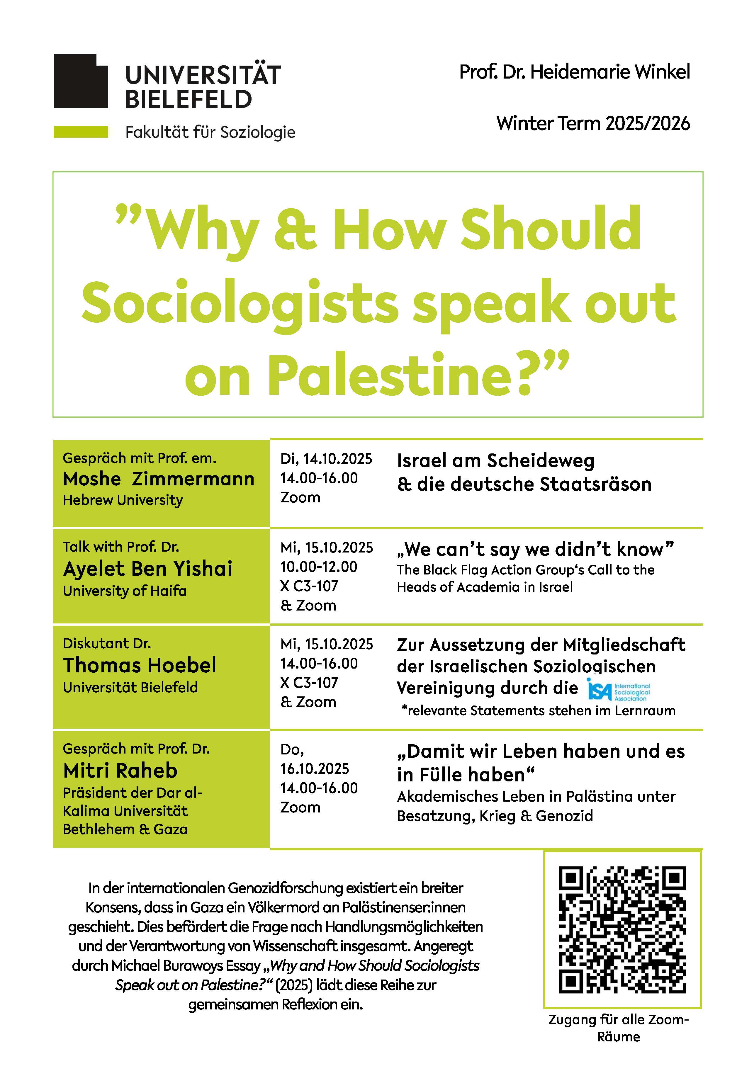 Angeregt durch Michael Burawoys Essay „Why and How Should Sociologists Speak out on Palestine?“ (2025) lädt diese Reihe daher zur gemeinsamen Reflexion und zum Austausch ein.