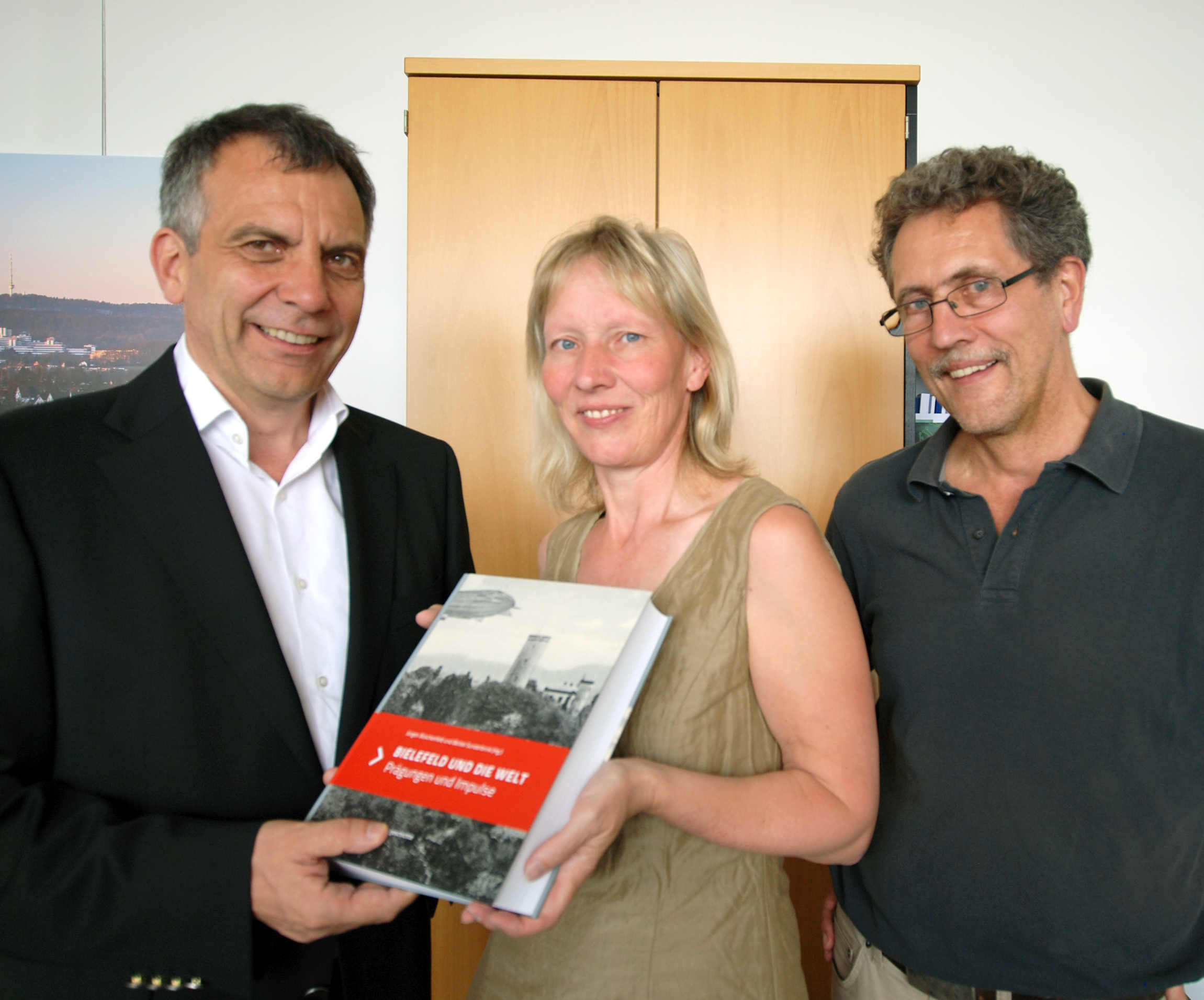 Das Besondere an diesem Jubiläumsbuch: es ist ein Kooperationsprojekt des Historischen Vereins für die Grafschaft Ravensberg und der Universität Bielefeld. Rektor Professor Dr.-Ing. Gerhard Sagerer hat das Geleitwort geschrieben, Oberbürgermeister Pit Clausen das Grußwort. Zum Dank überreichten Bärbel Sunderbrink und Jürgen Büschenfeld jetzt ein Exemplar Rektor Gerhard Sagerer.