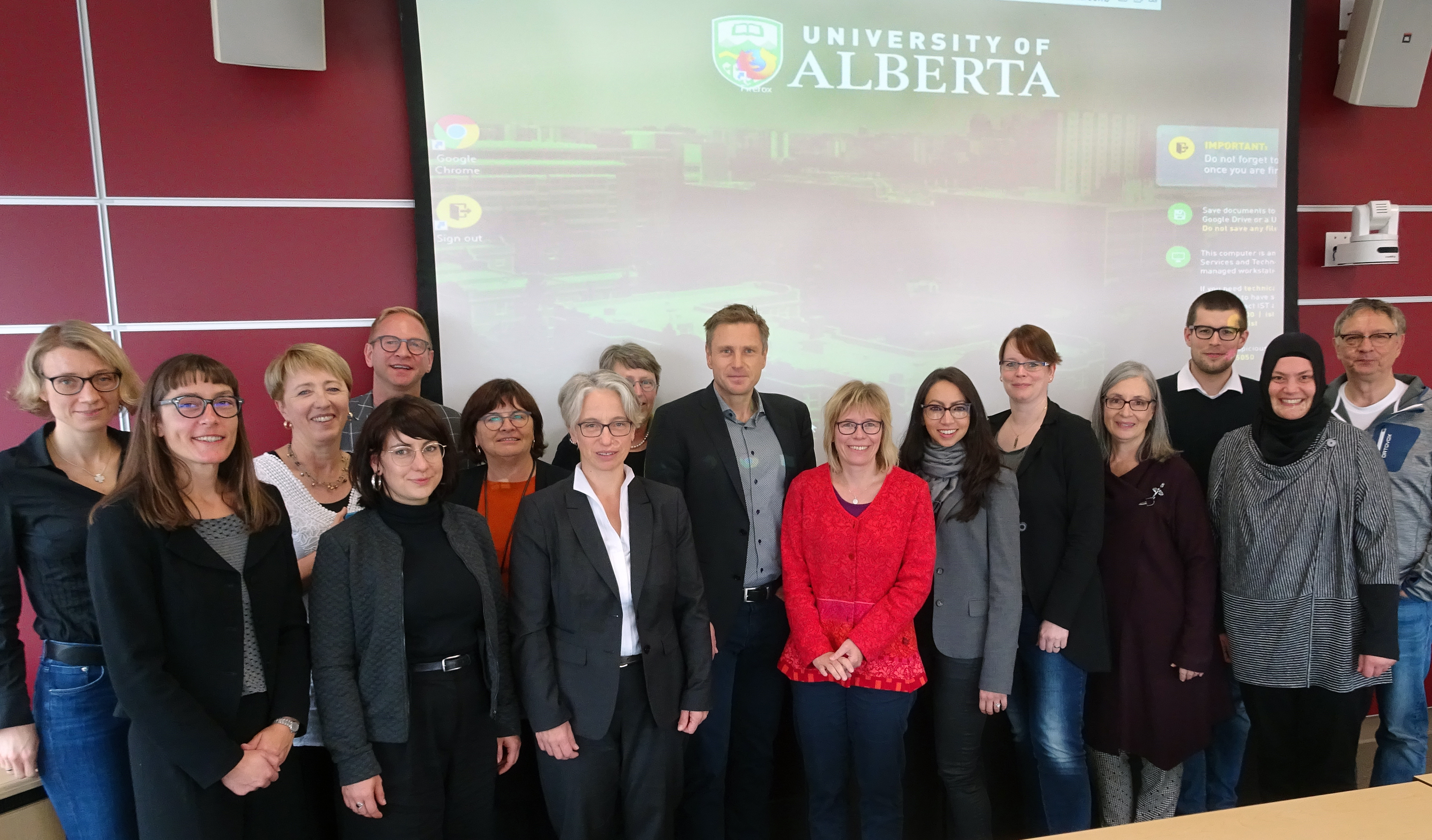 Trafen sich zu Workshops in Edmonton (v.l.): Michaela Vogt (UBI EW), Kerstin Hämel (UBI Gewi), Solina Richter (UoA Nursing), Jennifer Carnin (UBI EW), Randolph Wimmer (UoA Education), Lynette Shultz (UoA Education), Michaela Brause (FH BI Gewi), Vera Caine (UoA Nursing), Oliver Böhm-Kasper (UBI EW), Katja Makowsky (FH BI Gewi), Leila Angod (UBI EW), Kristina Schröder (UBI EW), Susan Sommerfeldt (UoA Nursing), Marcus Heumann (UBI Gewi), Havva Mazı (FH BI Gewi), Ralf Ulrich (UBI Gewi).