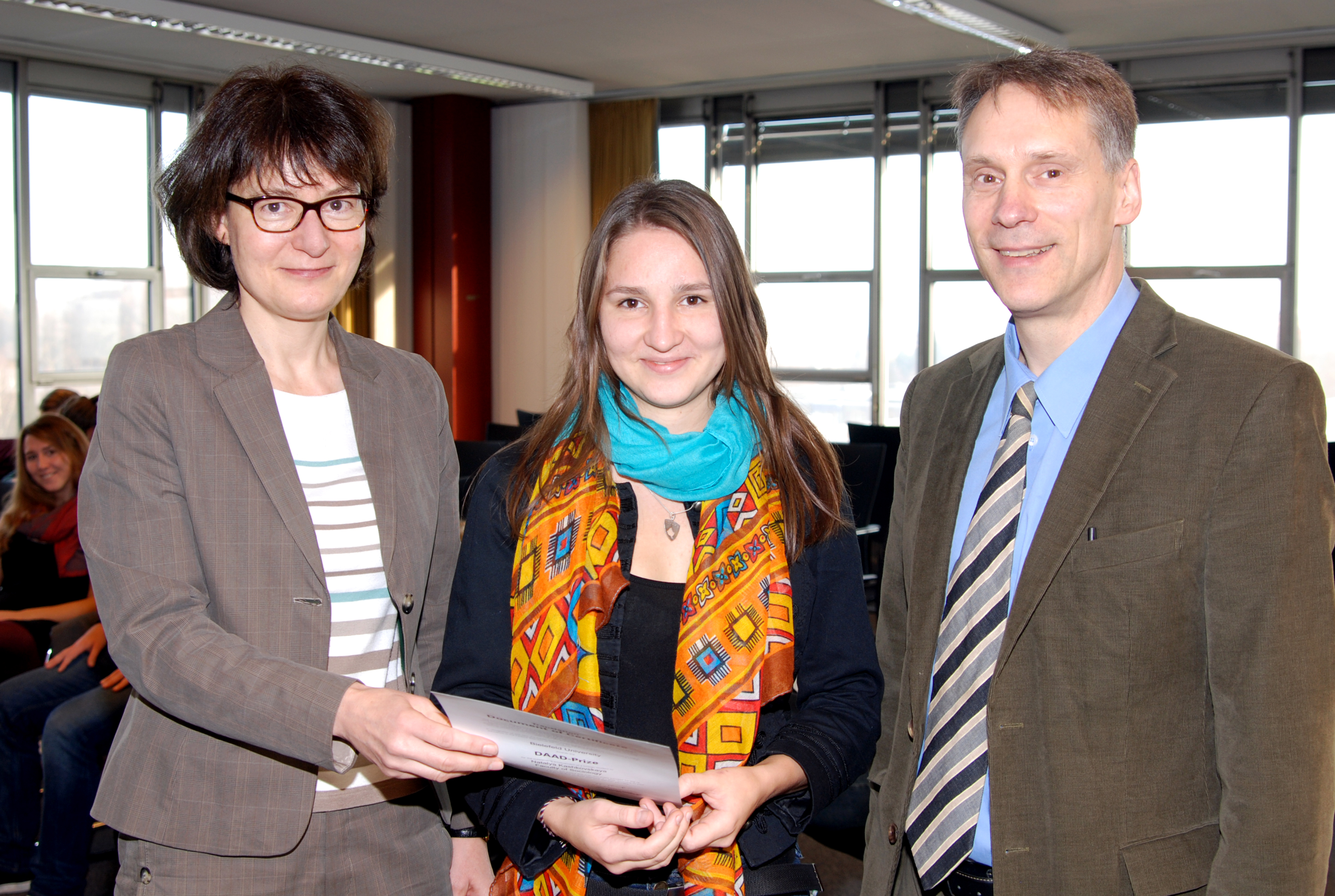 Natalya Kashkovskaya, Studentin des Masterstudiengangs Soziologie an der Universität Bielefeld, hat heute (18.12.2013) den mit 1.000 Euro dotierten DAAD-Preis 2013 (Preis des Deutschen Akademischen Austauschdienstes) erhalten. Den Preis überreichte ihr die Prorektorin für Internationales und Kommunikation Martina Kessel für Kashkovskayas „besondere akademische Leistungen und bemerkenswertes gesellschaftliches und interkulturelles Engagement.“