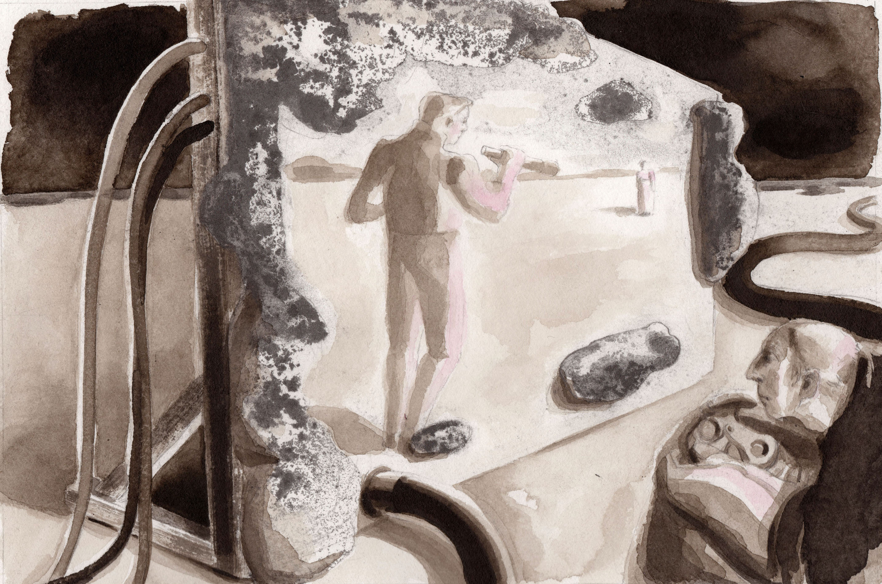 Die Ausstellung „Ich digi du“ fragt nach dem Verhältnis von Mensch und Maschine. In Antje Löbels Illustrationen geht es um die Macht des Menschen über die Maschine und seine gleich-zeitige Abhängigkeit von der Technik. Bild: Antje Löbel