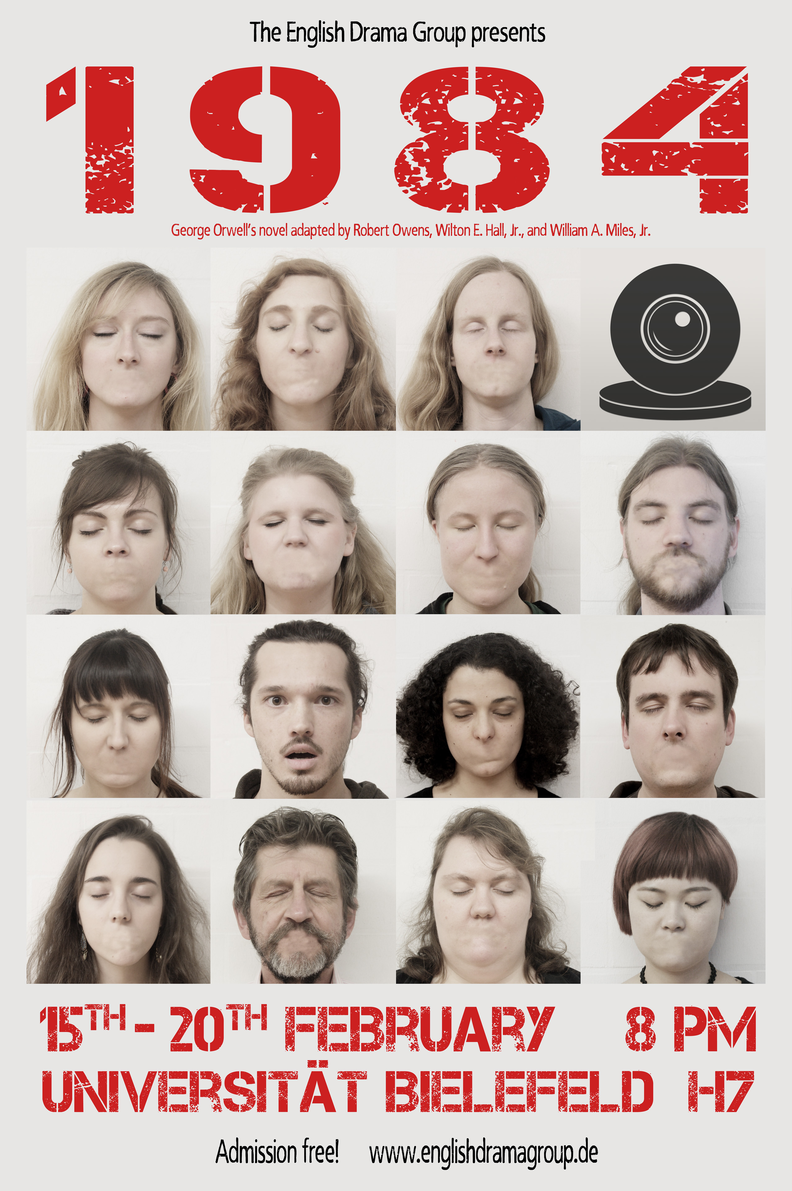 Die English Drama Group der Universität Bielefeld präsentiert im Februar eine Neufassung von George Orwells Klassiker „1984“, produziert von Angie Starczyk. Das Stück wird vom 15. bis 20. Februar, jeweils um 20 Uhr, im Hörsaal 7 in englischer Sprache aufgeführt. Das Theaterstück ist eine von Robert Owens, Wilton E. Hall Jr. und William A. Miles Jr. erstellte Bühnenfassung von Orwells Roman. Der Eintritt ist frei.