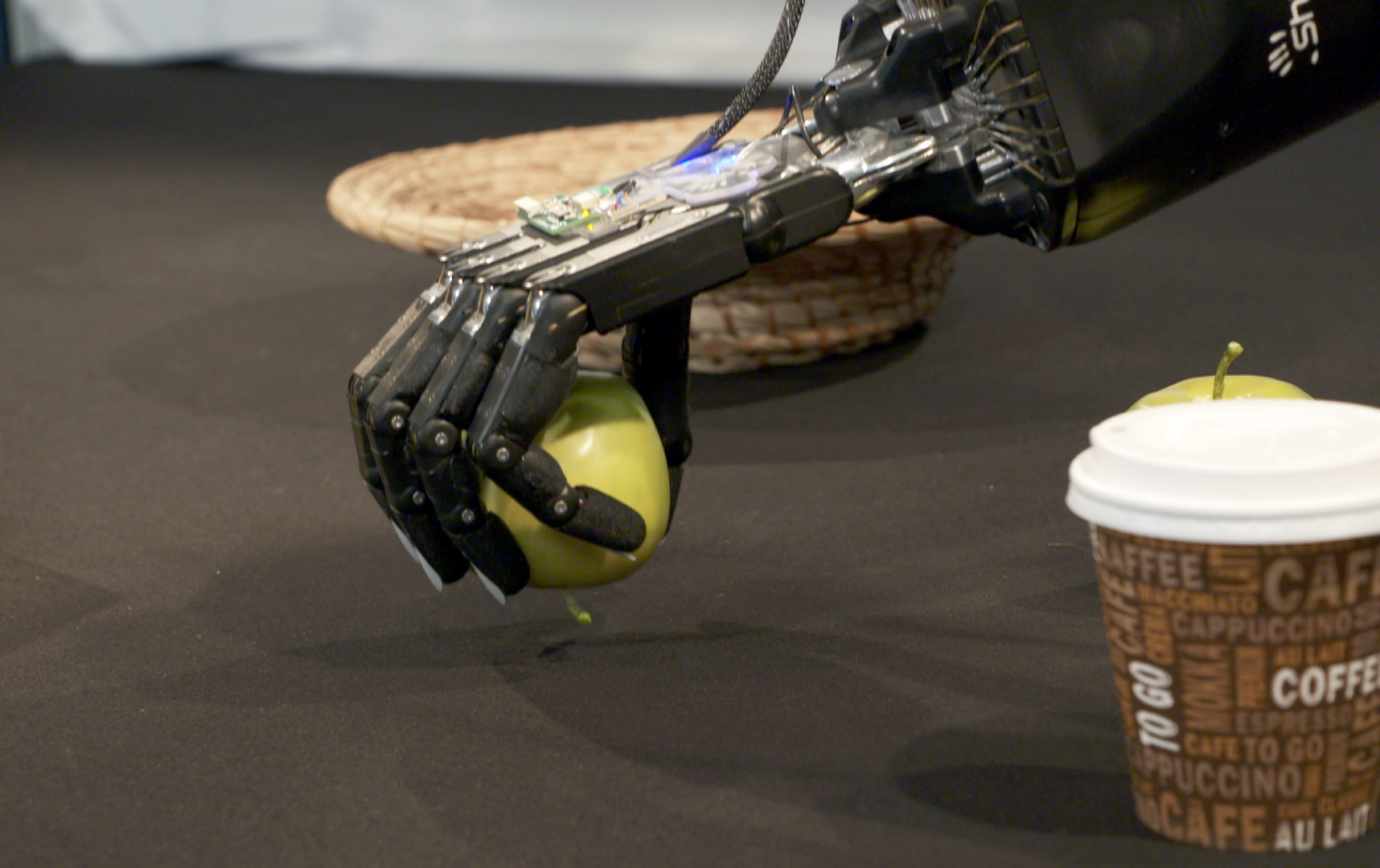 die Roboterhände die Kraft hätten, den Apfel fest zu drücken, dosieren