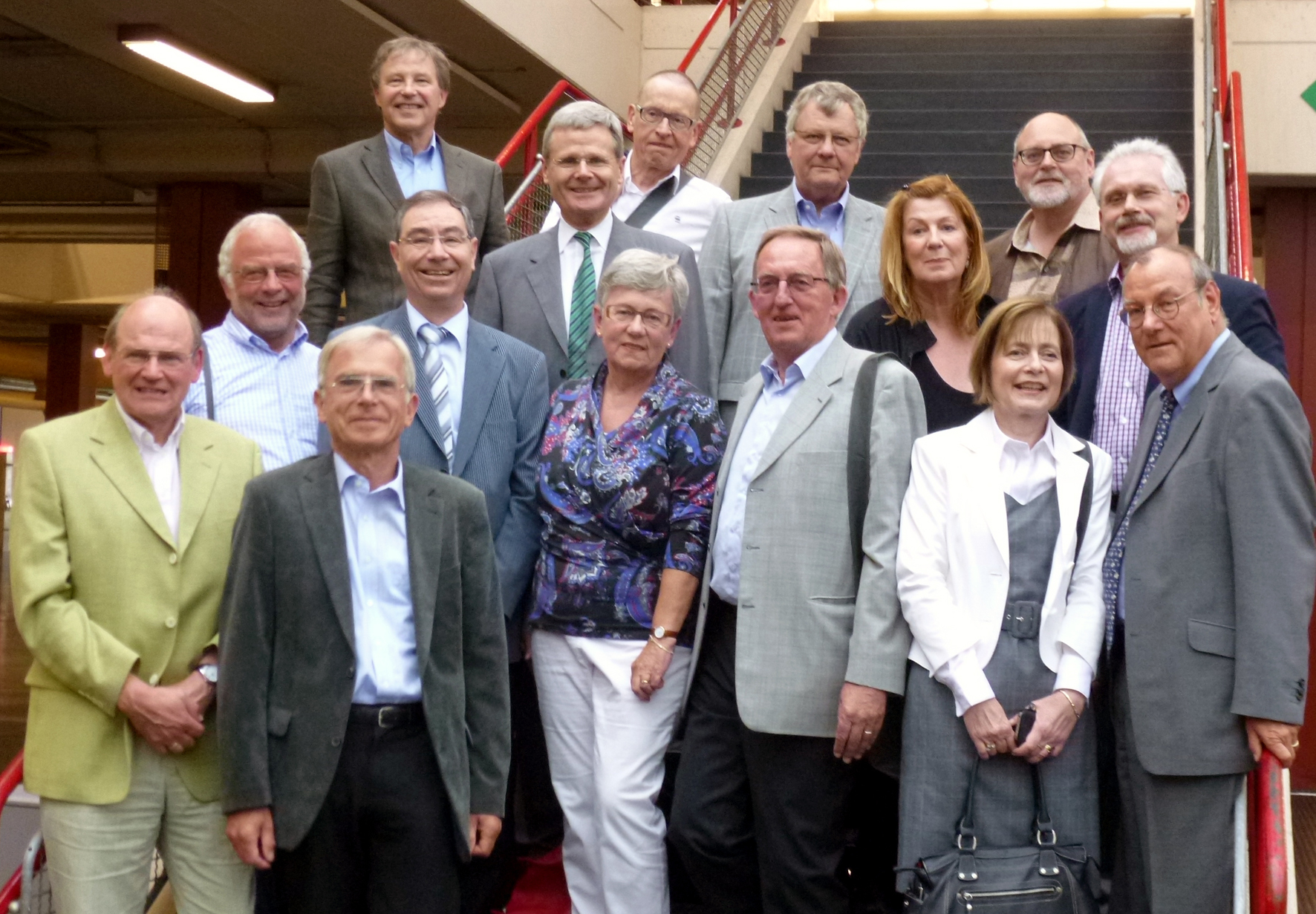 Auch der Kanzler der Universität Bielefeld, Hans-Jürgen Simm (oben links), nahm an dem Alumnitreffen teil. Er schloss sein Jurastudium 1974 ab, ist dem ersten Absolventenjahrgang aber seit Studienzeiten freundschaftlich verbunden. (Foto: Universität Bielefeld)