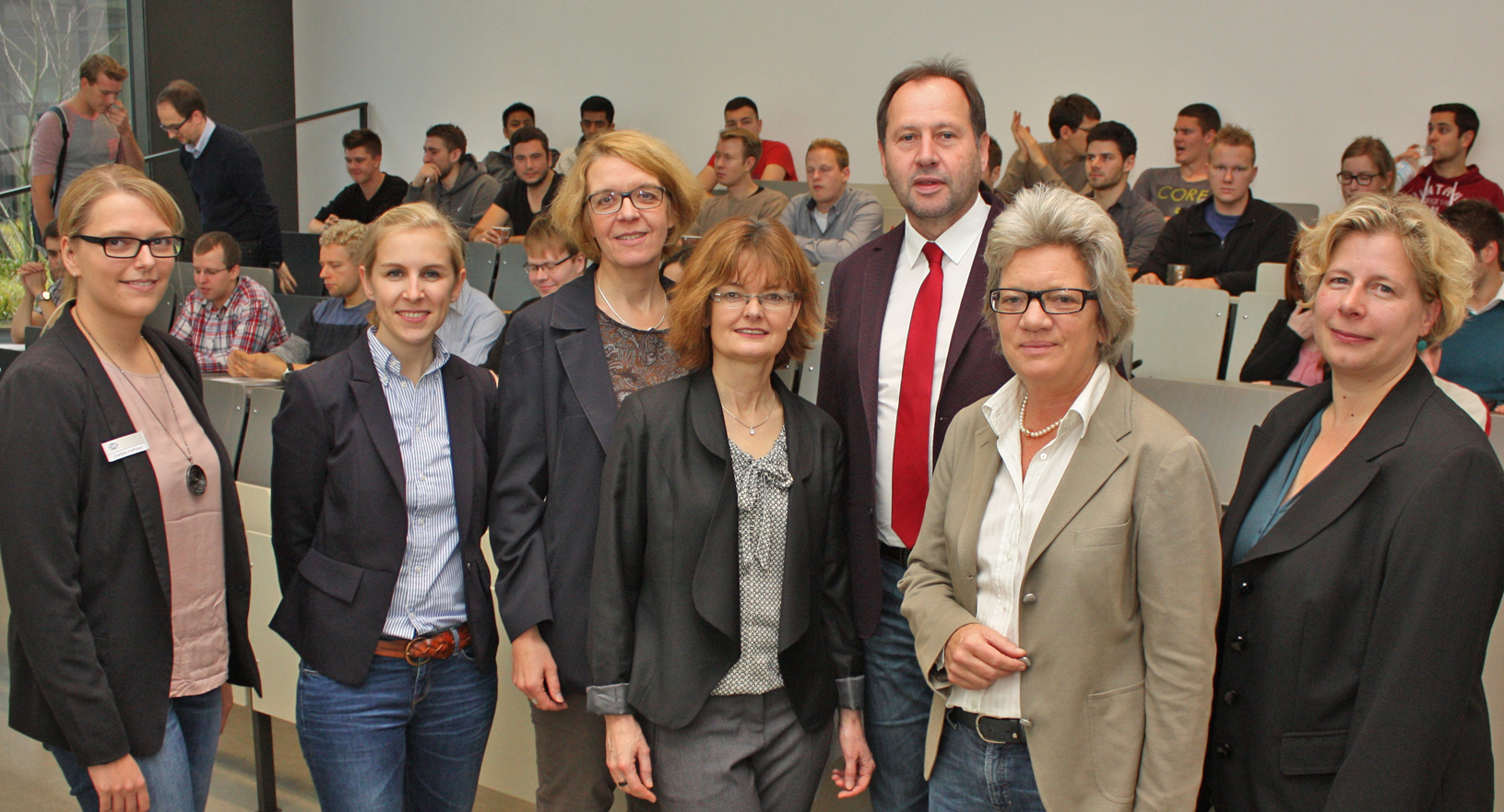 300 Zuhören besuchten heute (6. November) den MINT-Karrieretag unter dem Motto „Arbeitsfelder kompakt“. Das Kürzel MINT steht für „Mathematik, Informatik, Naturwissenschaft, Technik“. Treffpunkt war die Fachhochschule Bielefeld. Sechs Unternehmen aus der Region stellten in jeweils 45-minütigen Vorträgen spezielle Arbeitsfelder vor und gaben damit Einblicke in Aufgabengebiete für Berufseinsteiger oder Praktikumsinteressierte. Studierende und Promovierende wurden damit gleichermaßen angesprochen. Der MINT-Karrieretag ist eine gemeinsame Veranstaltung des Fachbereichs Ingenieurwissenschaften und Mathematik (IuM) der FH Bielefeld und der Universität Bielefeld.