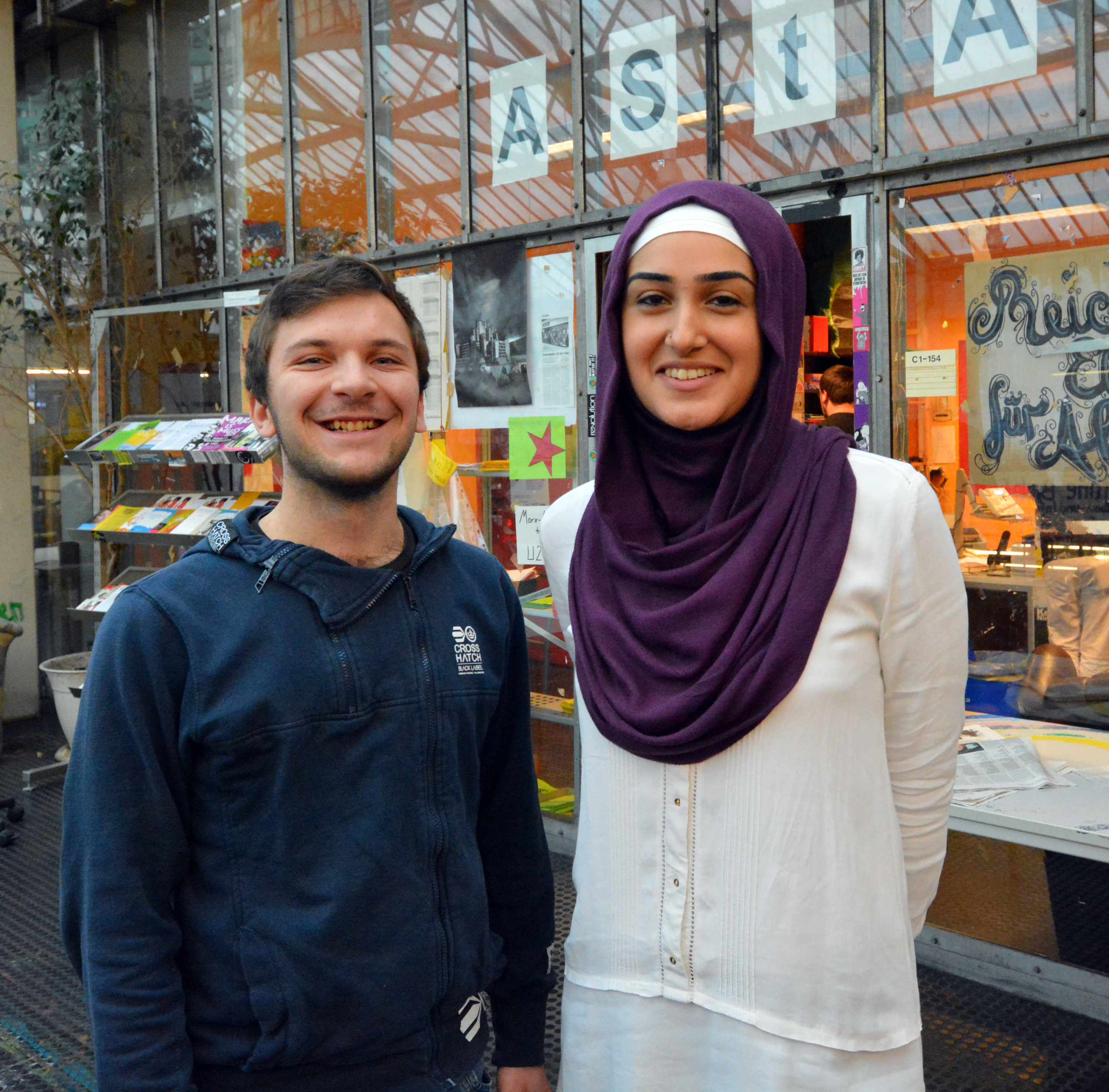 Feride Celik und Ricardo Bergmann sprechen für die Studierenden