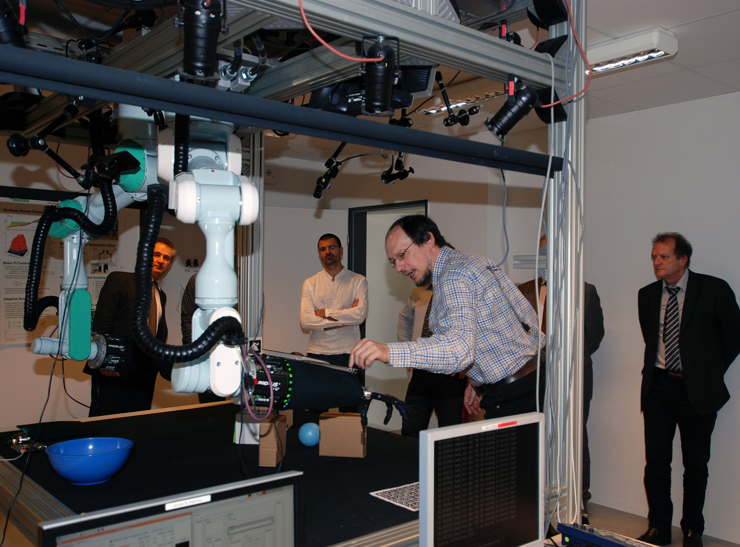 Unter dem Motto „Robotik trifft Geisteswissenschaften“ informierten sich die Besucher über die Forschung des Clusters, die Zusammenarbeit mit Industrie und Wirtschaft und diskutierten gemeinsam mit den Bielefelder Forscherinnen und Forschern über Möglichkeiten deutsch-französischer Kooperation. Neben Vorträgen zur aktuellen Forschung am CITEC stand eine Führung durch ausgewählte Labore auf dem Programm. Hier verschafften sich die französischen Gäste einen persönlichen Eindruck der Bielefelder Laborlandschaft.