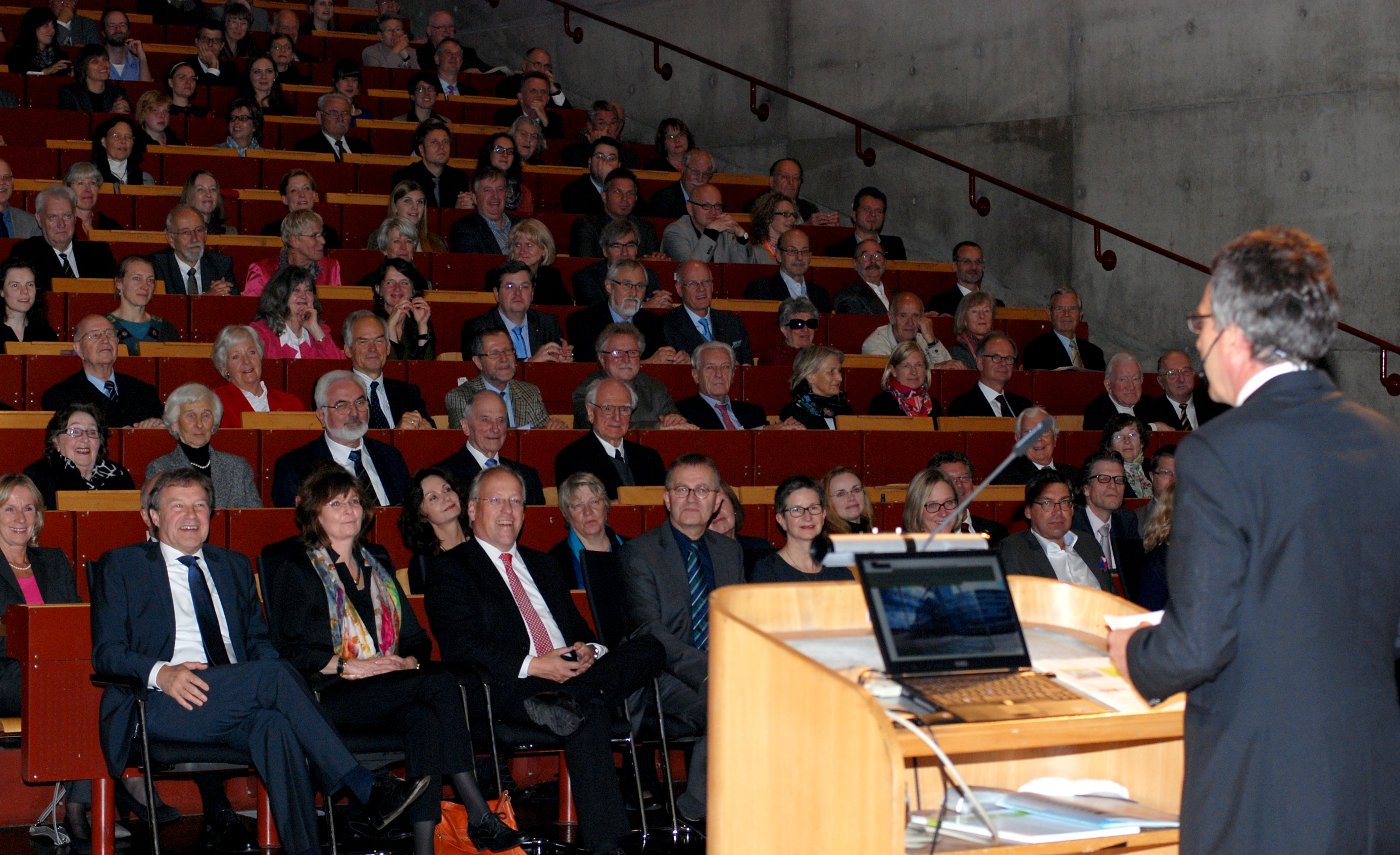 Die Universität Bielefeld hat am Freitag (11. Oktober) im Auditorium maximum ihren Jahresempfang veranstaltet. 700 Gäste aus Politik, Wissenschaft, Kultur und Wirtschaft waren der Einladung von Rektor Professor Dr.-Ing. Gerhard Sagerer zur akademischen Feier mit anschließendem Empfang gefolgt. Den Festvortrag zum Thema „Wege zu einer neuen Sicherheitskultur“ hielt Professorin Dr. Claudia Eckert, IT-Sicherheitsexpertin von der Technischen Universität München und Direktorin des Fraunhofer Institutes für Sichere Informationstechnik. Erstmals wurde in diesem Jahr ein Gleichstellungspreis verliehen und die Physikerin Dr. Anna-Kristina Regtmeier erhielt für hervorragende Leistungen und persönliches Engagement in der Lehre den Karl Peter Grotemeyer-Preis.