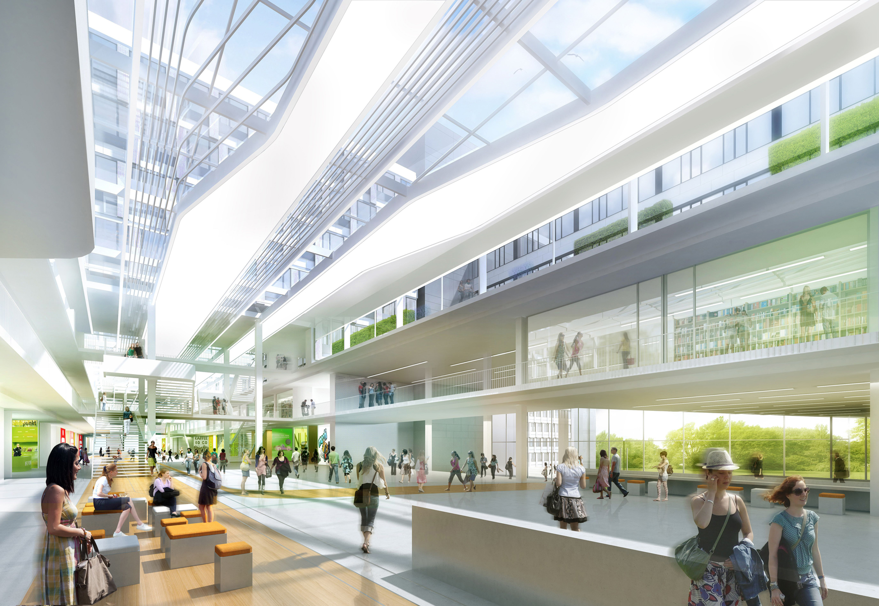 - Die zentrale Universitätshalle als verbindendes und kommunikatives Forum erhalten.