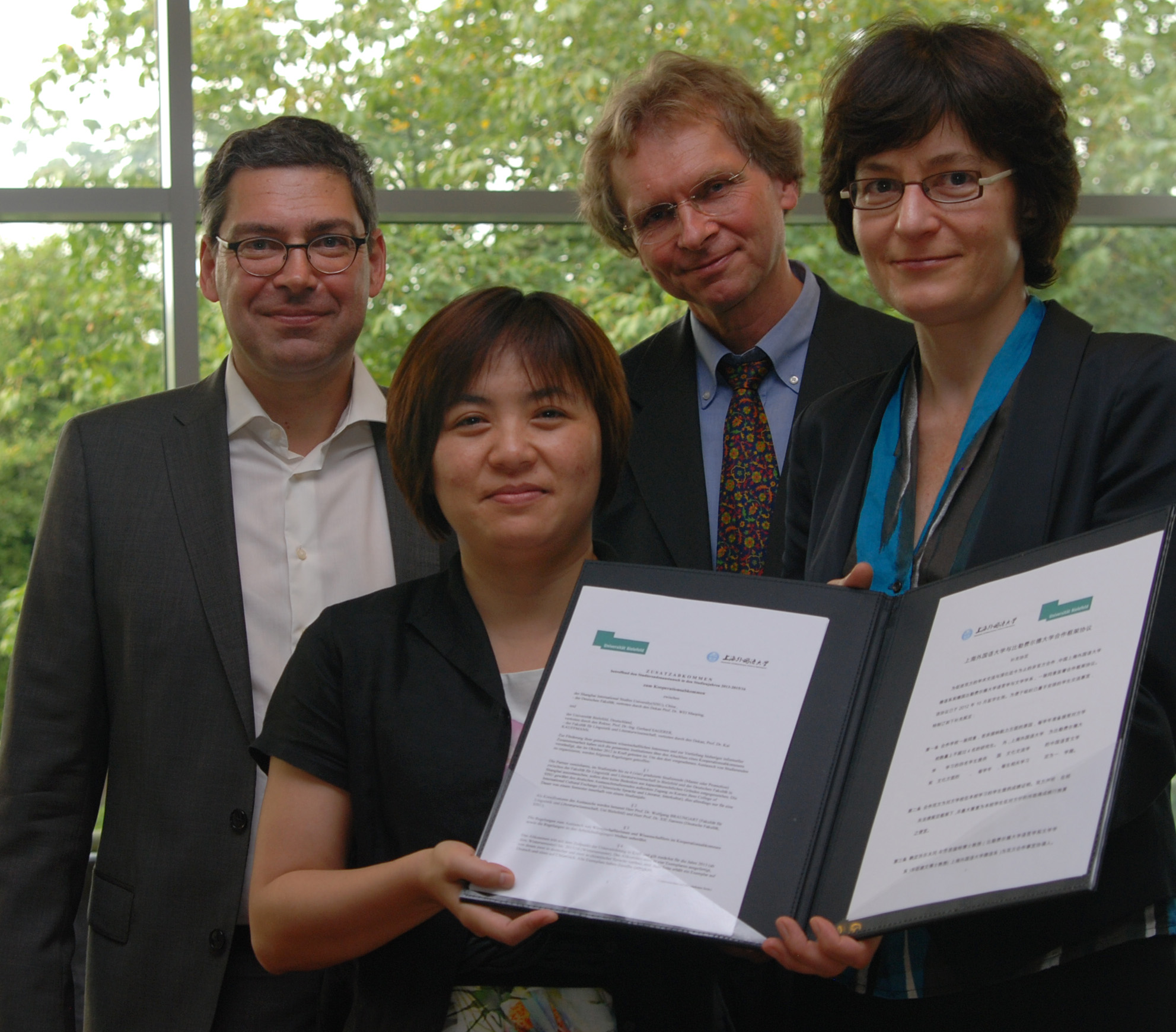 Zwischen der Universität Bielefeld und der Shanghai International Studies University (SISU) bestehen schon seit längerem gute Beziehungen, insbesondere über die Bielefelder Fakultät für Linguistik und Literaturwissenschaft. Am Donnerstag, dem 29. August, ist die Kooperation der beiden Universitäten offiziell bestätigt worden. Für die Zukunft ist unter anderem der Austausch von Wissenschaftlerinnen und Wissenschaftlern geplant. Auch gemeinsame Forschungsprojekte sind vorgesehen. Sie werden sich mit dem Zusammenhang von Ästhetik, Religion und Modernisierung befassen.