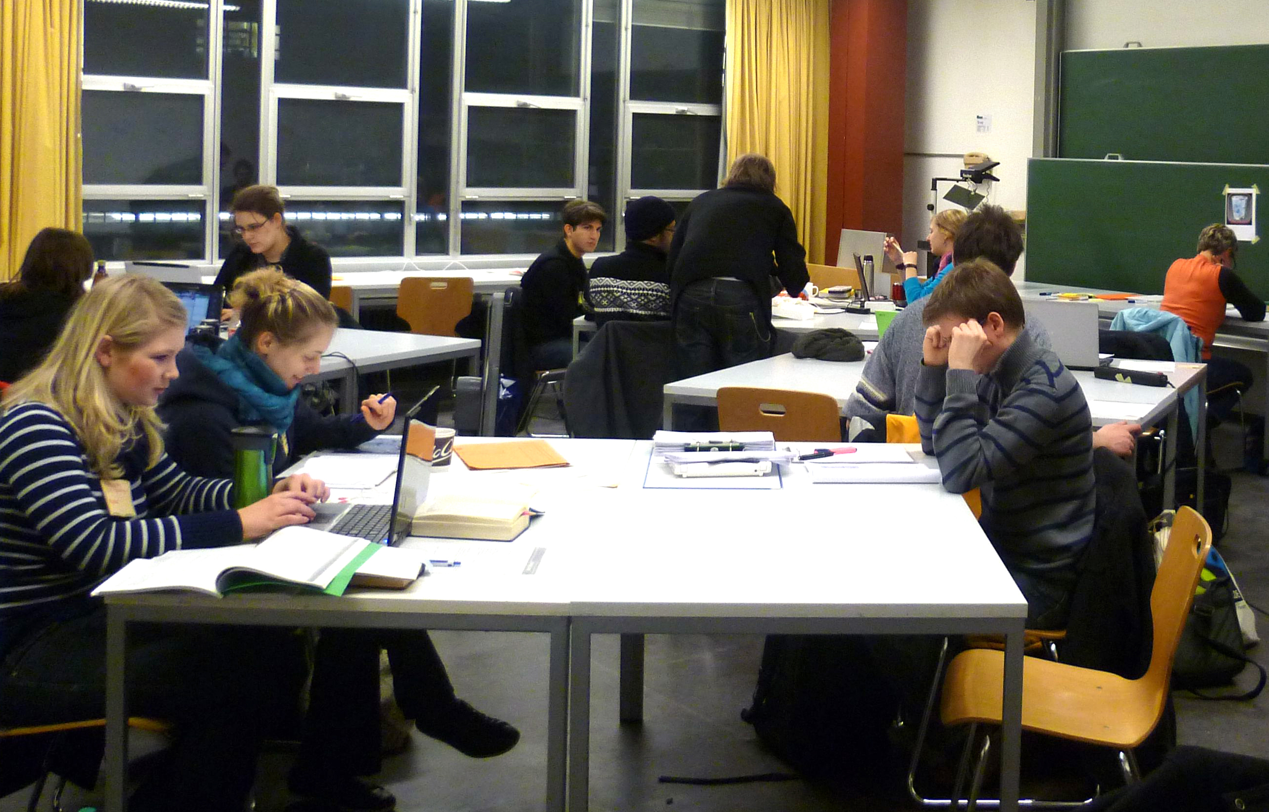Nachdem die letzten beiden Schreibevents – eine „Lange Nacht“ und ein „Langen Tag“ der Hausarbeiten – auf durchgängig positive Resonanz gestoßen sind, wird am 1. März etwas Neues ausprobiert: Das Schreiben wird von den Seminarräumen in die Universitätsbibliothek verlegt – in den im November 2011 eröffneten Lernort_B1. Er wurde von der Bibliothek in Ko-operation mit dem Peer Learning-Projekt der Universität erstellt. Der Lernort_B1 verbindet den altbewährten Bibliotheksarbeitsplatz mit zeitgemäßer und vielseitiger Infrastruktur, die nicht länger nur die stille Einzelarbeit, sondern eine lebendige und kommunikative Lernkultur des Miteinanders fördert.