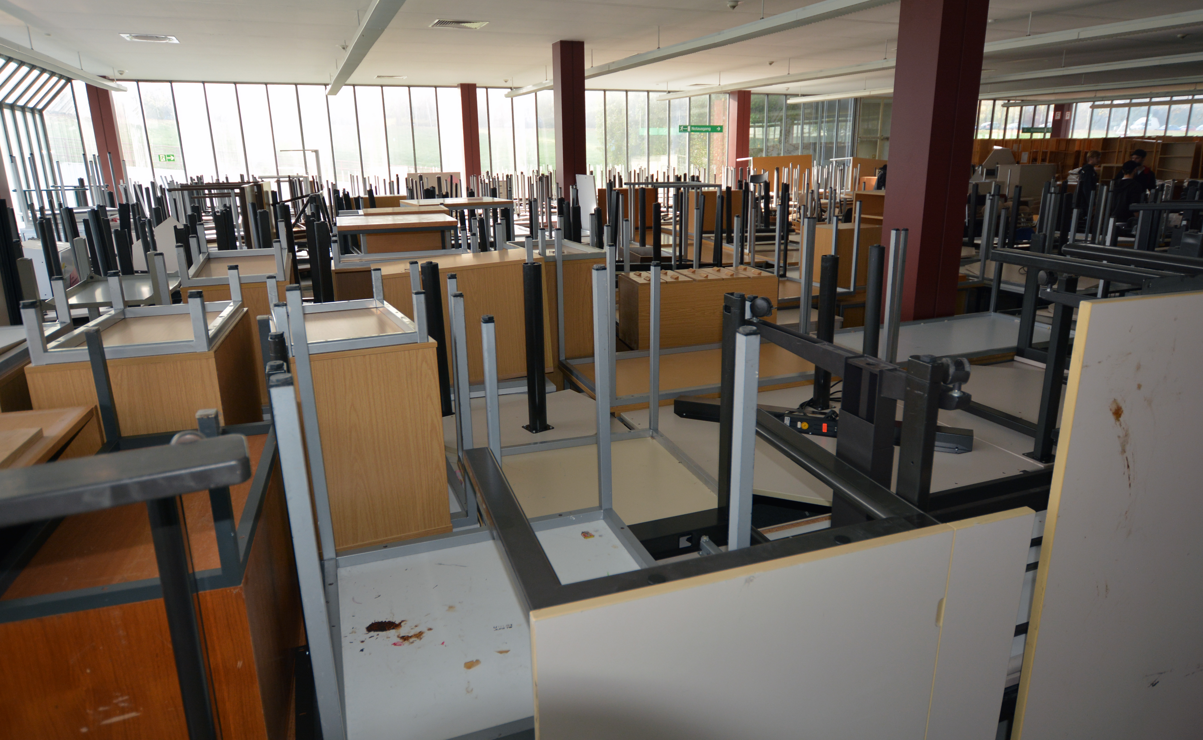 Nach dem 26. November wird die ehemalige Bibliotheksfläche für die Modernisierung an den Bau- und Liegenschaftsbetrieb übergeben. Danach stehen für die nicht mehr benötigten Möbel keine Lagerflächen mehr zur Verfügung, und die Universität wird die dann noch verbleibenden Regale, Schreibtische und Stühle entsorgen.